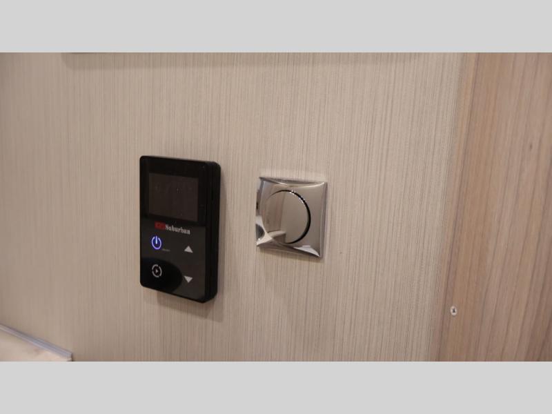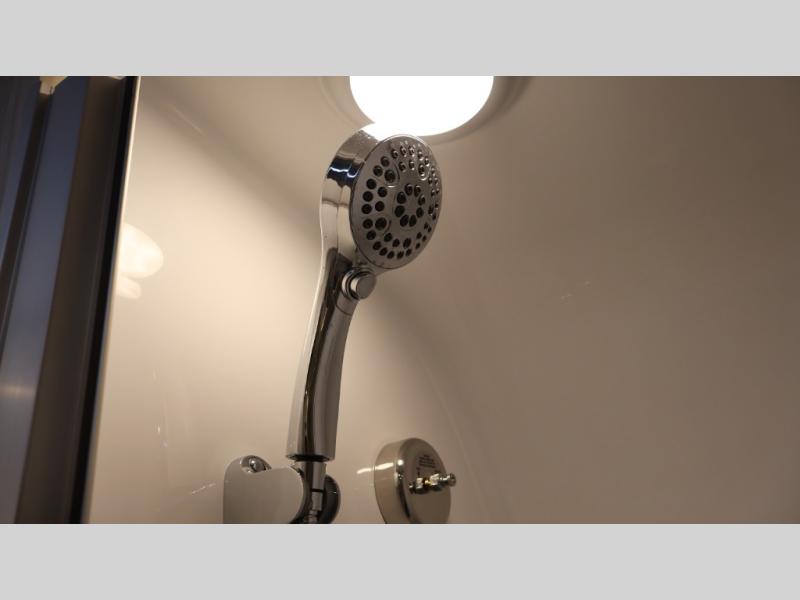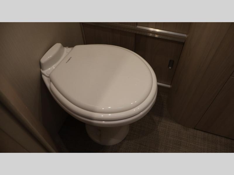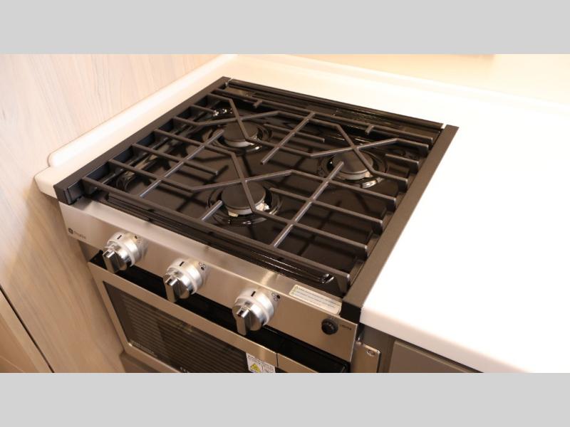 You will find comfort and luxury all throughout this travel trailer! From the front twin beds with AdaptaFlex memory foam mattresses and nightstands on either side, to the rear L-shaped lounge that you can enjoy your meals at and convert into an extra sleeping space. The separated bathroom has a private toilet and vanity together across from an independent shower with a seat to freshen up each morning. You can prepare your best meals in the ultra-modern kitchen with the stainless steel three burner cooktop, the oven, the deep stainless steel Moen sink, and the DuPont Corian countertops will be easy to clean, plus they have multifunctional storage bins that are flush to the surface behind the sink.