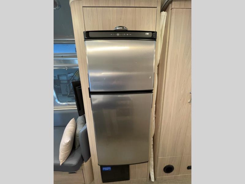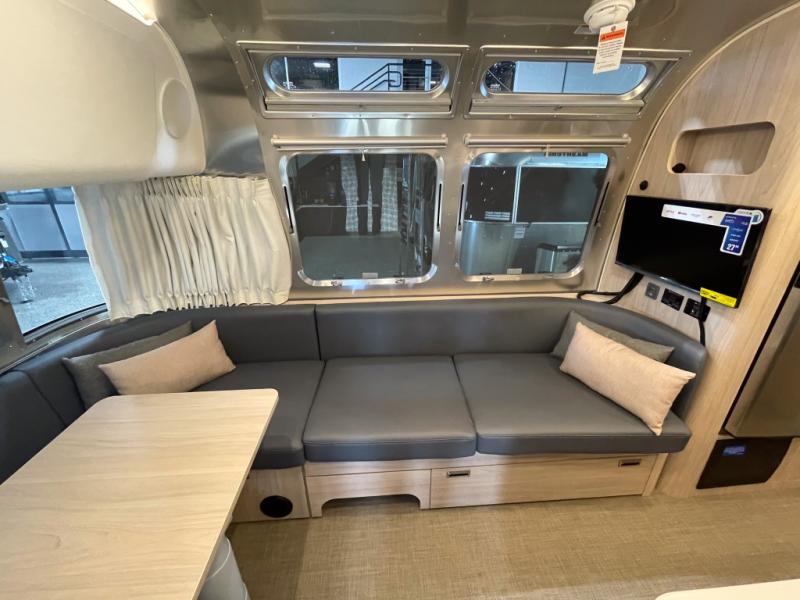 Each one of these Airstream Globetrotter travel trailers are built to last a lifetime with a structural frame and durable fabrics! European inspired and American made with a minimalist design that includes crisp, clean lines and delicate neutral colors for a sophisticated beauty with soft curves, panoramic windows, wrap-around upholstery, and backlighting. The HITCH seating upholstery has a fine woven texture, a subtle metallic tip print, and a distinctive two-tone feel, as well as durable and stain-resistant. You won't have to go far when charging your electronics thanks to the strategically placed USB and 110V outlets throughout. The QuietStream ducted A/C system can quickly cool the inside and also has a heat pump to pull ambient heat from the air. Come choose your favorite model today!