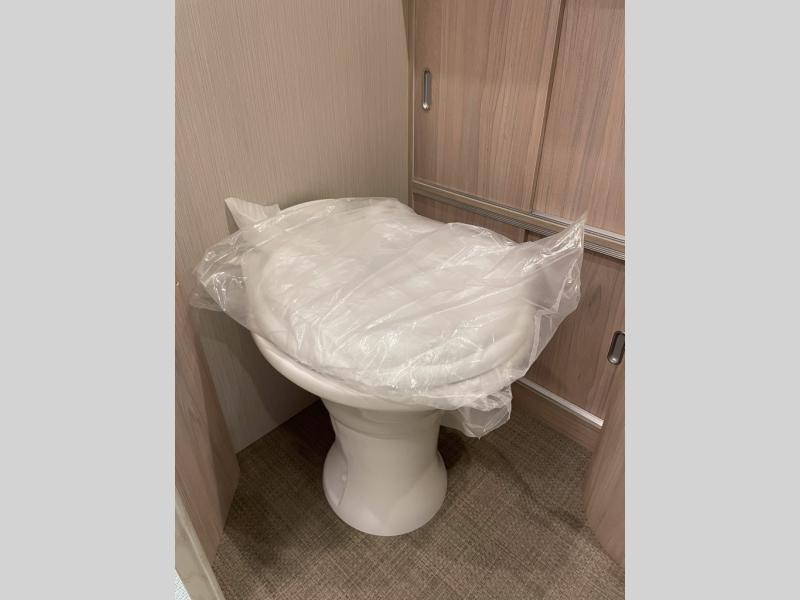 You will find comfort and luxury all throughout this travel trailer! From the front twin beds with AdaptaFlex memory foam mattresses and nightstands on either side, to the rear L-shaped lounge that you can enjoy your meals at and convert into an extra sleeping space. The separated bathroom has a private toilet and vanity together across from an independent shower with a seat to freshen up each morning. You can prepare your best meals in the ultra-modern kitchen with the stainless steel three burner cooktop, the oven, the deep stainless steel Moen sink, and the DuPont Corian countertops will be easy to clean, plus they have multifunctional storage bins that are flush to the surface behind the sink.