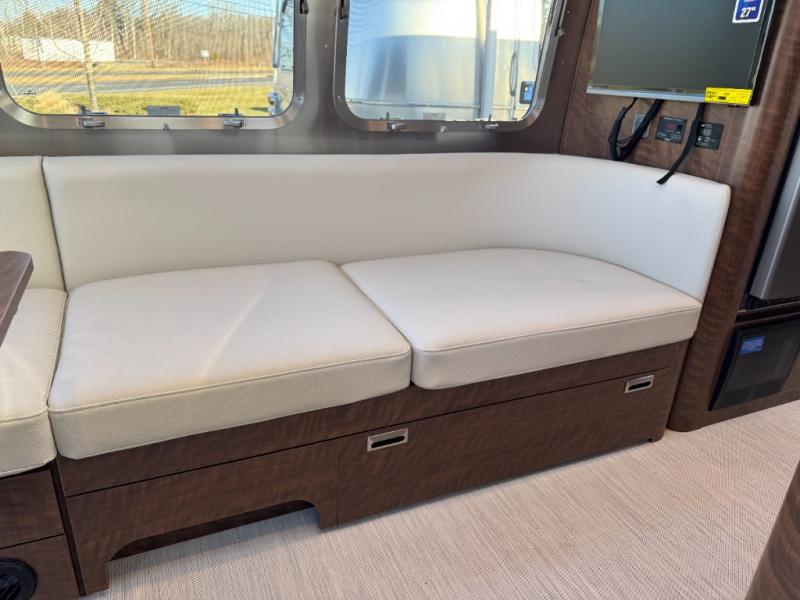 Each one of these Airstream Globetrotter travel trailers are built to last a lifetime with a structural frame and durable fabrics! European inspired and American made with a minimalist design that includes crisp, clean lines and delicate neutral colors for a sophisticated beauty with soft curves, panoramic windows, wrap-around upholstery, and backlighting. The HITCH seating upholstery has a fine woven texture, a subtle metallic tip print, and a distinctive two-tone feel, as well as durable and stain-resistant. You won't have to go far when charging your electronics thanks to the strategically placed USB and 110V outlets throughout. The QuietStream ducted A/C system can quickly cool the inside and also has a heat pump to pull ambient heat from the air. Come choose your favorite model today!