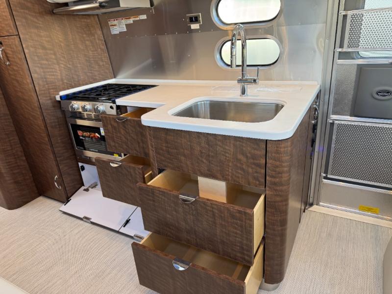 Airstream Globetrotter travel trailer 27FB Twin highlights: