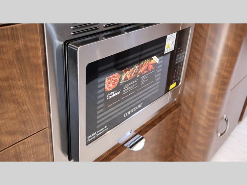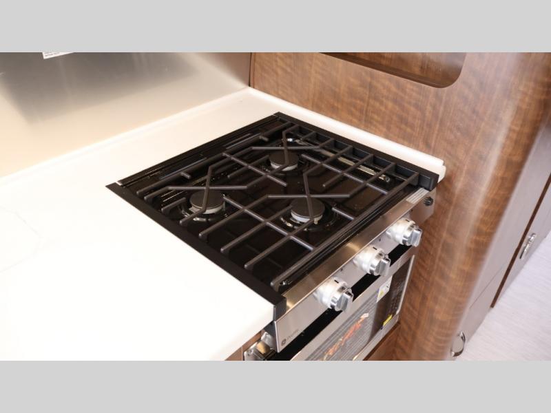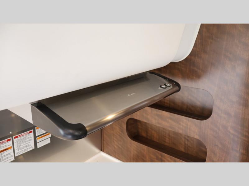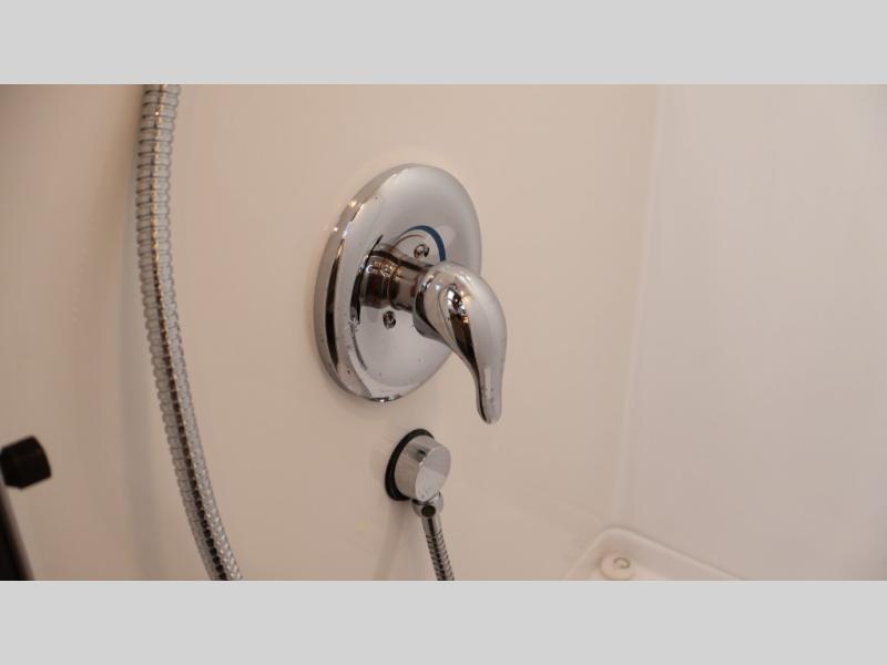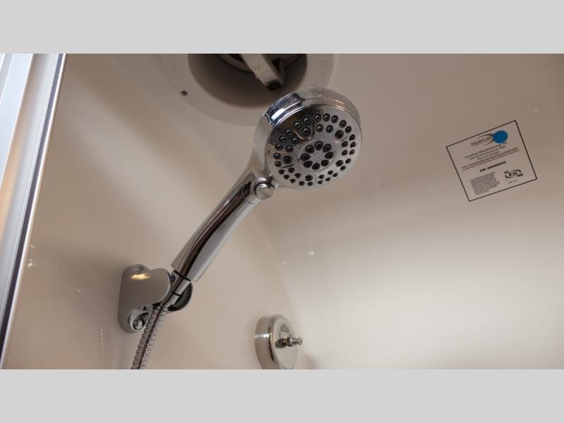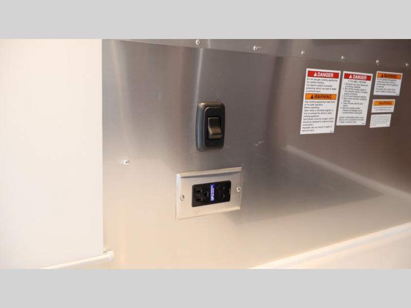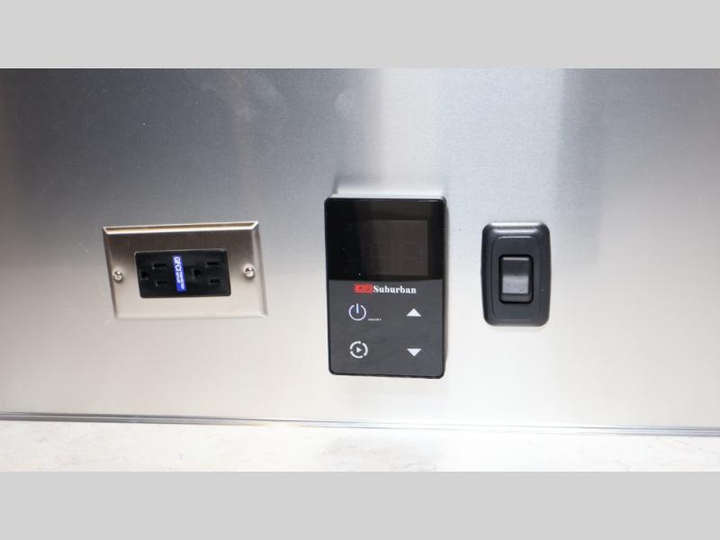 Start traveling the country in true luxury with this travel trailer! It features a front wrap around lounge with stain resistant Spradling Hitch fabric that can be pulled out and the table lowered to create a 38" x 84" sleeping space. A separated bathroom makes it easy for one person to freshen up in the shower with a seat while another is across the way utilizing the private toilet and vanity. The rear queen bed has a memory foam mattress to enjoy a good night's rest, nightstands to set your glass of water, and a 24" 12V DC Smart TV to watch your favorite movie in bed. If you'd like a center aisle and longer mattresses, just choose the optional twin beds! You will find plenty of storage throughout between the upper and lower kitchen cabinets, a slide-out pantry, multifunctional storage bins that are flush to the surface behind the deep stainless steel Moen sink, under-the-bed storage, and a closet to hang your clothes.