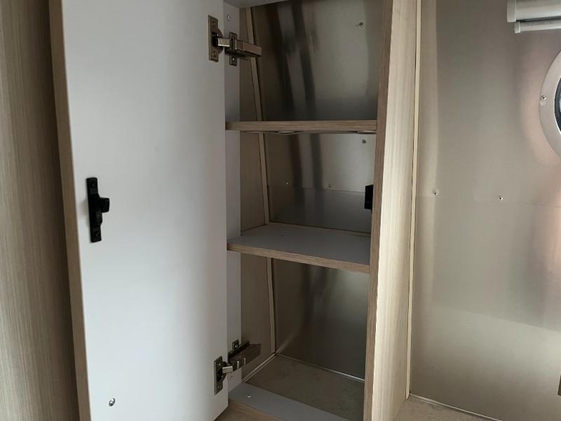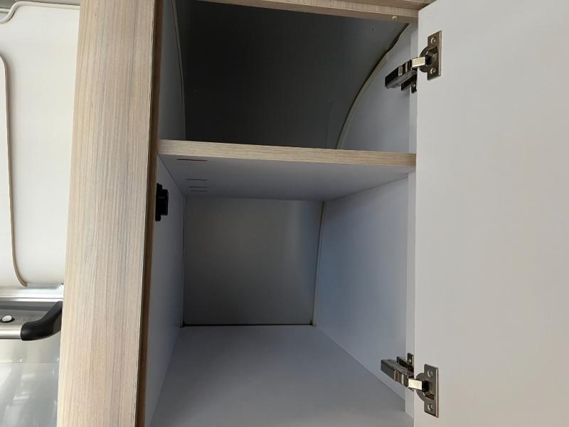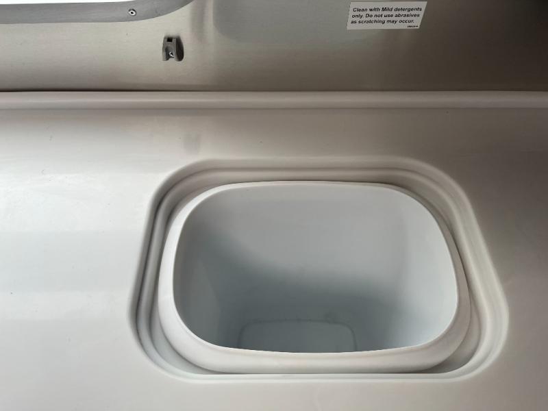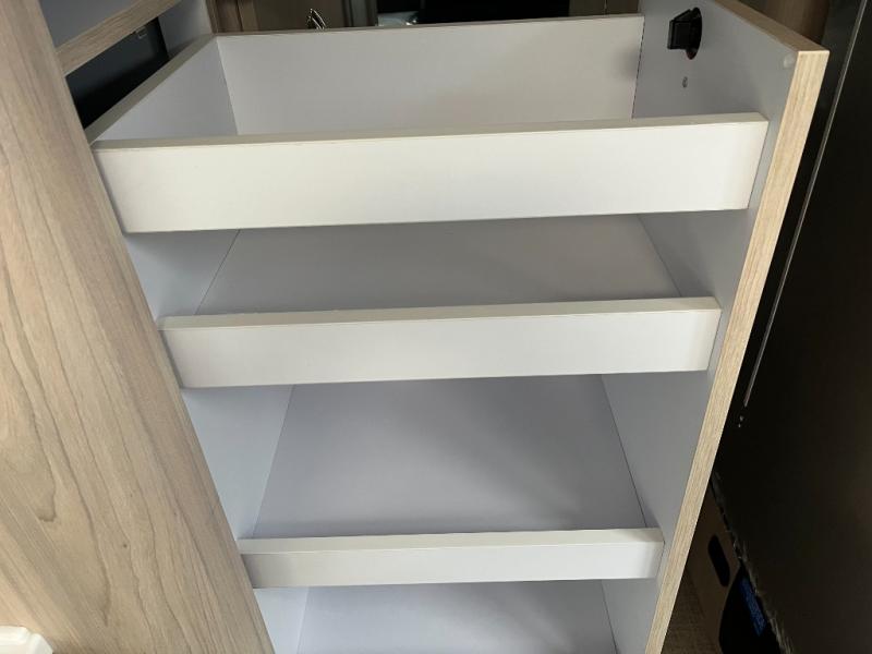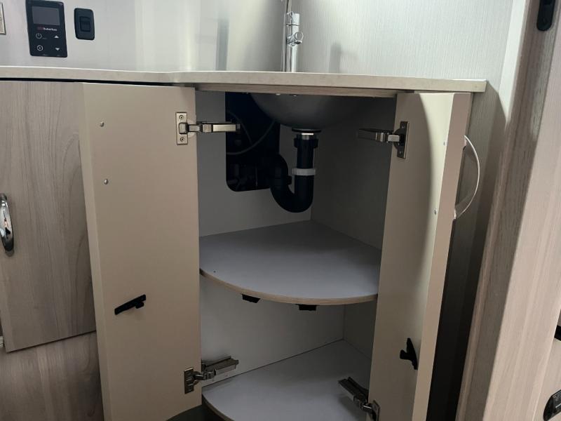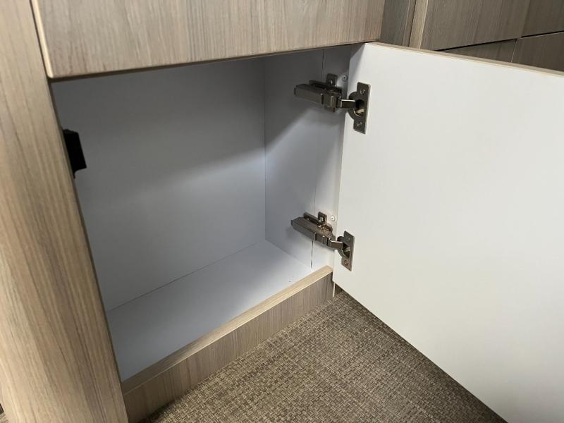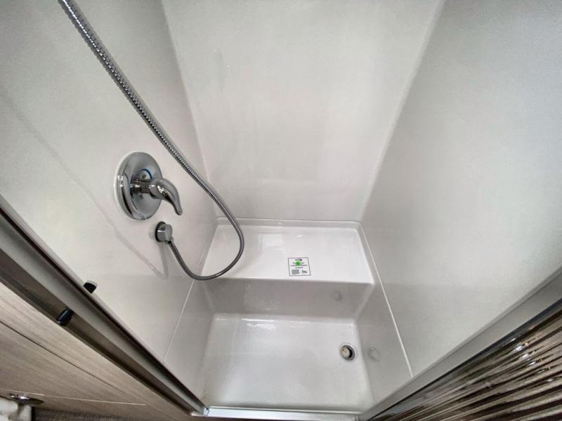 The rear bathroom offers residential comfort with a generous shower, a well-designed vanity, and high-quality fixtures. Smart storage nooks and a spacious layout make daily routines feel smooth and enjoyable, even during extended trips.