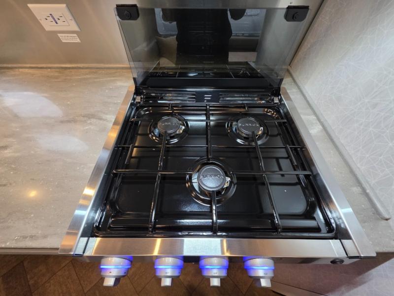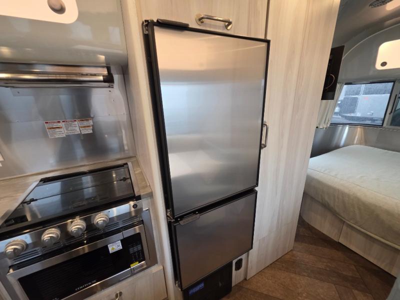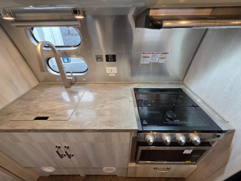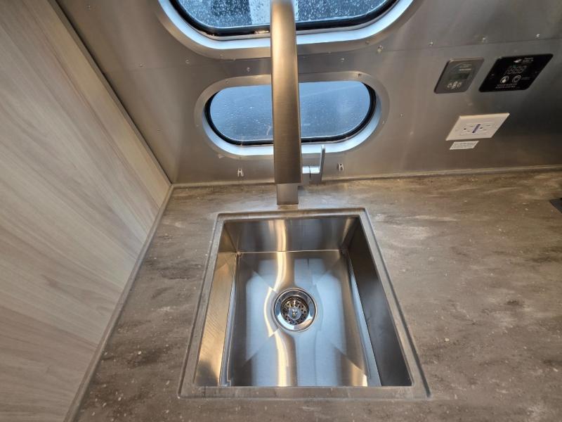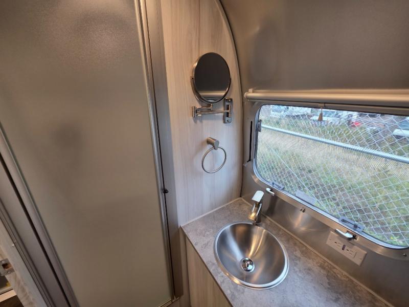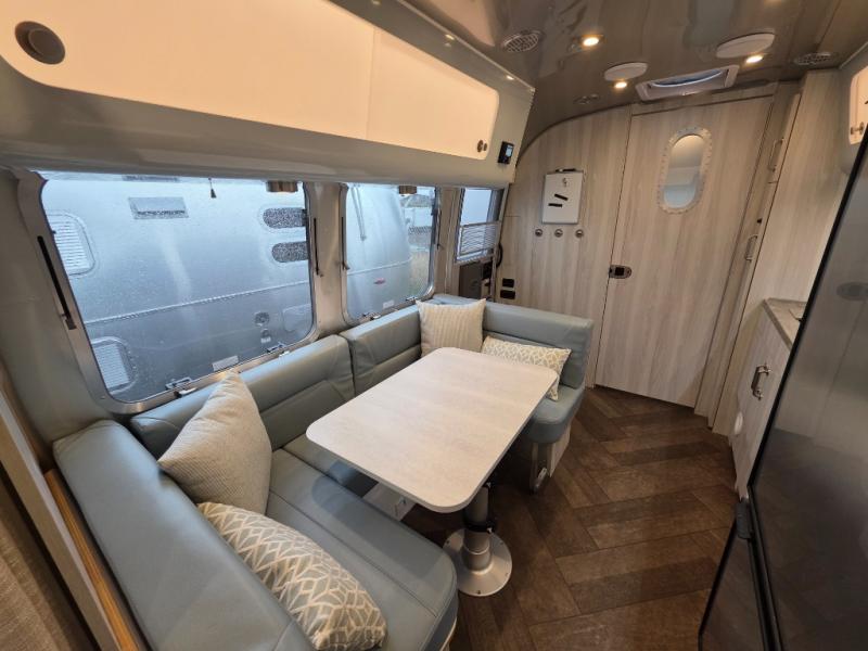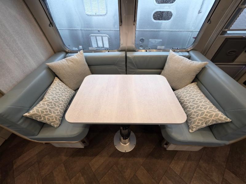 Every time you step foot into the Airstream International travel trailer, you will feel as if you are breathing in a breath of fresh air! The fresh coastal décor was inspired by the waterfront, and the stylish interior delivers a relaxing environment and comfortable luxury. The panoramic windows increase the amount of natural sunlight that streams through to the interior, but they also have blackout shades that you can close whenever you need a darkened room. The beautiful, handcrafted marine-grade Lite-Ply laminated cabinetry is an attractive base for the overhead storage lockers that have sliding doors and LED lighting. The dimmable interior LED lighting will create the perfect amount of illumination for you as you spend time indoors. The exterior has excellent features as well with its enclosed aluminum insulated heated underbelly, unique front door key with heavy-duty deadbolt, optional solar package, solar front window protection, and exterior shower with hot and cold water.