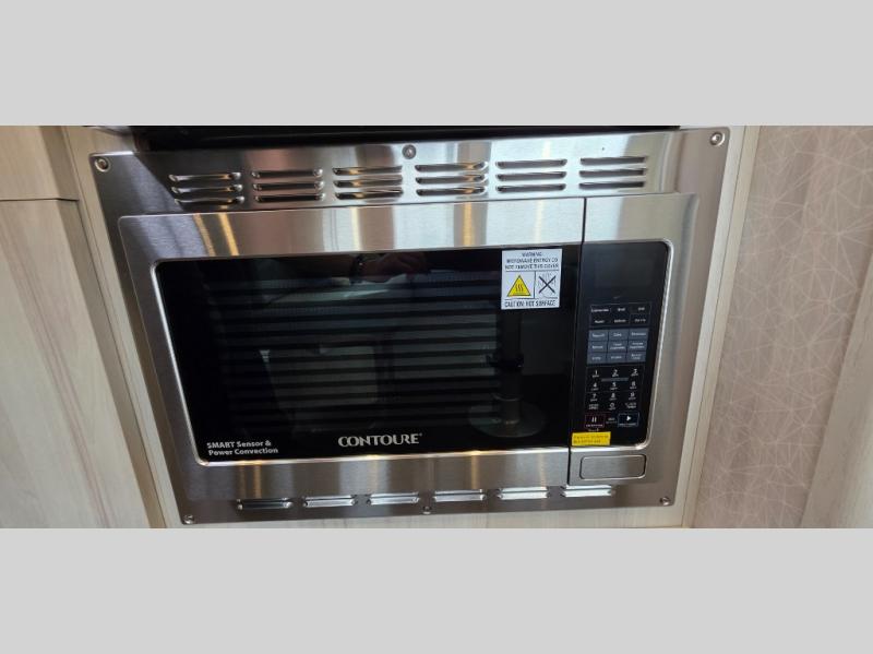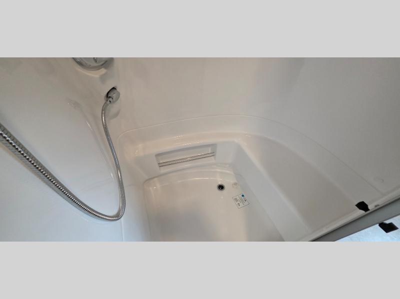 What kind of an adventurer are you? Are you the kind that enjoys having modern features and a calming environment? If you are, you absolutely must check out this International travel trailer! You will love having your own little sanctuary to retreat to while you are away. The front twin beds will be THE place to spend your mornings because you can prop yourself up against the sleeping pillows and decorative throw pillows while you sip on a hot cup of coffee and admire the amazing views coming through the surrounding panoramic windows. There is also a 24" 12V DC Smart TV included in this area so you can catch up on the news. The wardrobe with a hanging bar will ensure that your clothes stay wrinkle free, and you can also use the retractable clothes line in the spacious shower to let some clothes air dry.