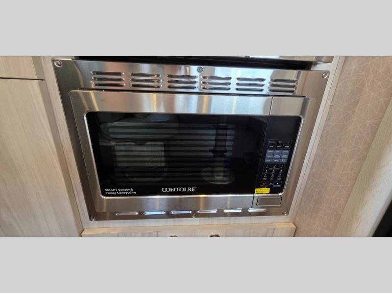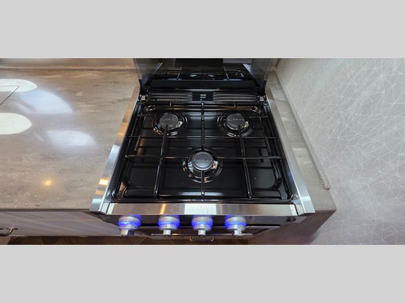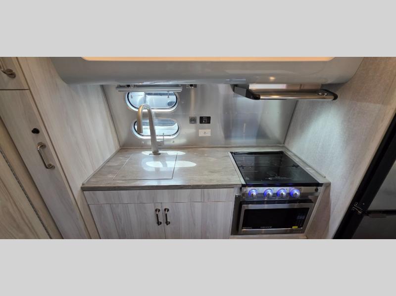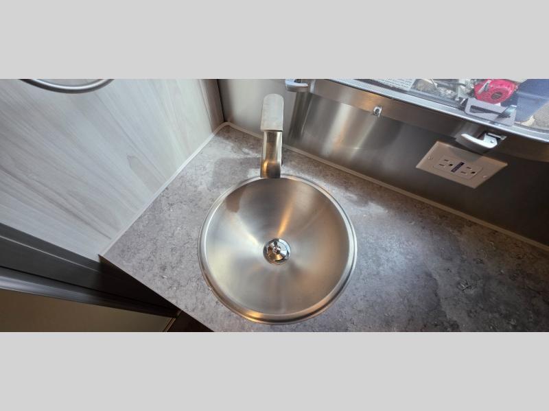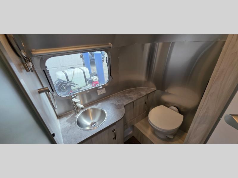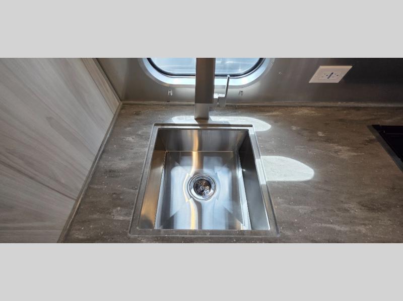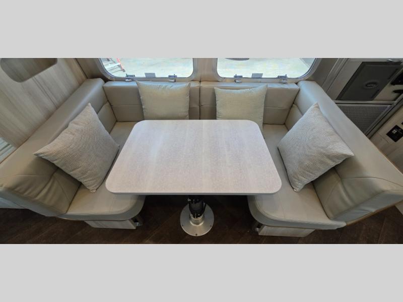 Every time you step foot into the Airstream International travel trailer, you will feel as if you are breathing in a breath of fresh air! The fresh coastal décor was inspired by the waterfront, and the stylish interior delivers a relaxing environment and comfortable luxury. The panoramic windows increase the amount of natural sunlight that streams through to the interior, but they also have blackout shades that you can close whenever you need a darkened room. The beautiful handcrafted marine-grade Lite-Ply laminated cabinetry is an attractive base for the overhead storage lockers that have sliding doors and LED lighting. The dimmable interior LED lighting will create the perfect amount of illumination for you as you spend time indoors. The exterior has excellent features as well with its enclosed aluminum insulated heated underbelly, unique front door key with heavy-duty deadbolt, optional solar package, solar front window protection, and exterior shower with hot and cold water.