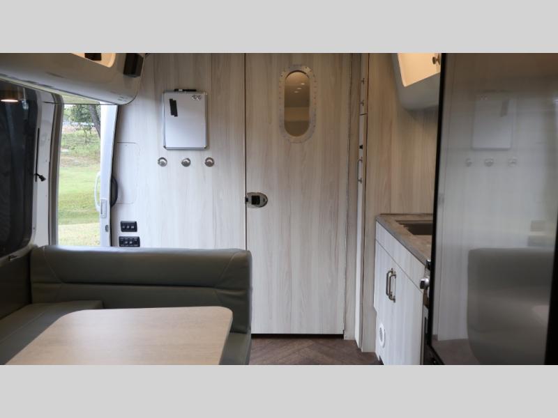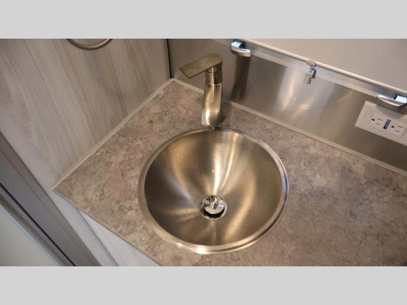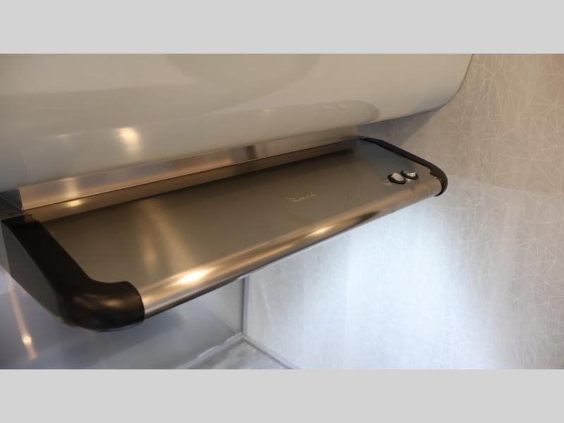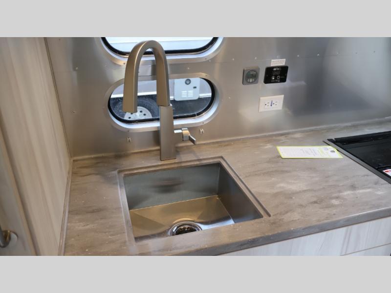 Every time you step foot into the Airstream International travel trailer, you will feel as if you are breathing in a breath of fresh air! The fresh coastal décor was inspired by the waterfront, and the stylish interior delivers a relaxing environment and comfortable luxury. The panoramic windows increase the amount of natural sunlight that streams through to the interior, but they also have blackout shades that you can close whenever you need a darkened room. The beautiful handcrafted marine-grade Lite-Ply laminated cabinetry is an attractive base for the overhead storage lockers that have sliding doors and LED lighting. The dimmable interior LED lighting will create the perfect amount of illumination for you as you spend time indoors. The exterior has excellent features as well with its enclosed aluminum insulated heated underbelly, unique front door key with heavy-duty deadbolt, optional solar package, solar front window protection, and exterior shower with hot and cold water.