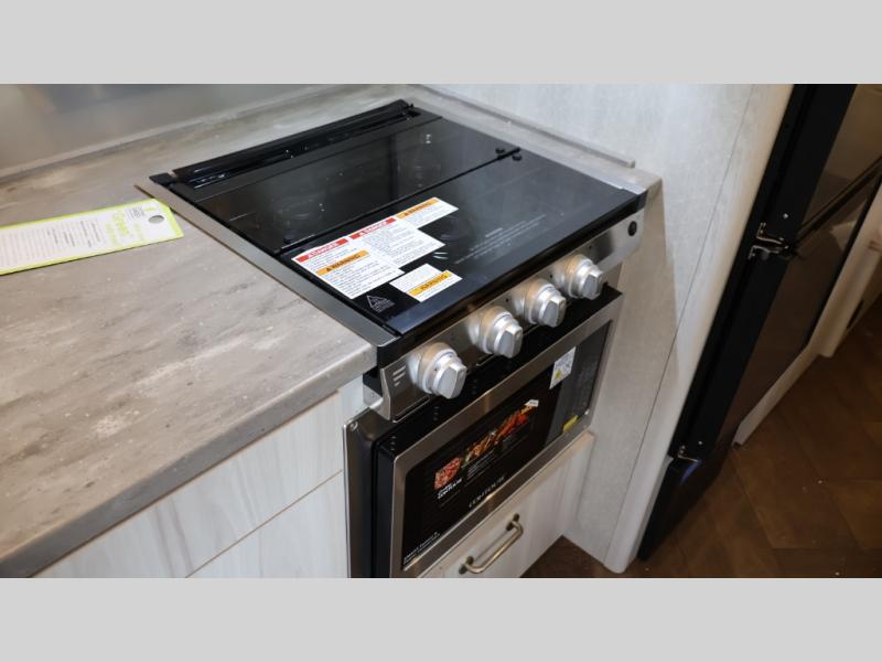 What kind of an adventurer are you? Are you the kind that enjoys having modern features and a calming environment? If you are, you absolutely must check out this International travel trailer! You will love having your own little sanctuary to retreat to while you are away. The front twin beds will be THE place to spend your mornings because you can prop yourself up against the sleeping pillows and decorative throw pillows while you sip on a hot cup of coffee and admire the amazing views coming through the surrounding panoramic windows. There is also a 24" 12V DC Smart TV included in this area so you can catch up on the news. The wardrobe with a hanging bar will ensure that your clothes stay wrinkle free, and you can also use the retractable clothes line in the spacious shower to let some clothes air dry.