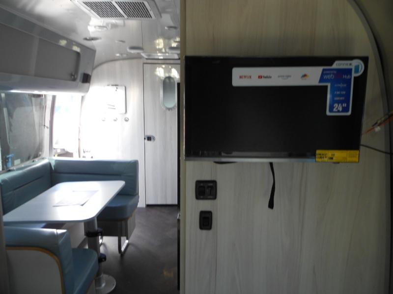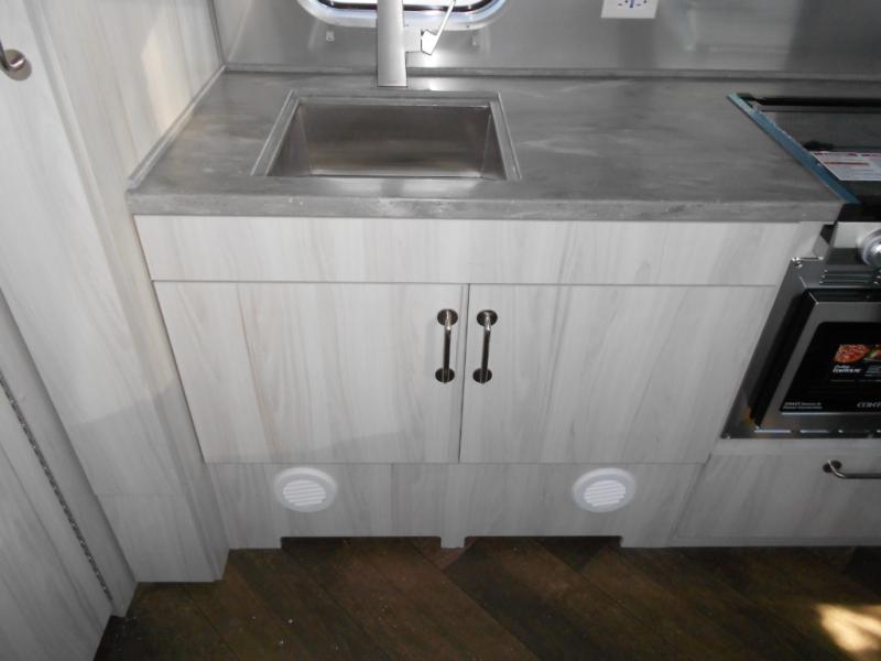 Every time you step foot into the Airstream International travel trailer, you will feel as if you are breathing in a breath of fresh air! The fresh coastal décor was inspired by the waterfront, and the stylish interior delivers a relaxing environment and comfortable luxury. The panoramic windows increase the amount of natural sunlight that streams through to the interior, but they also have blackout shades that you can close whenever you need a darkened room. The beautiful handcrafted marine-grade Lite-Ply laminated cabinetry is an attractive base for the overhead storage lockers that have sliding doors and LED lighting. The dimmable interior LED lighting will create the perfect amount of illumination for you as you spend time indoors. The exterior has excellent features as well with its enclosed aluminum insulated heated underbelly, unique front door key with heavy-duty deadbolt, optional solar package, solar front window protection, and exterior shower with hot and cold water.