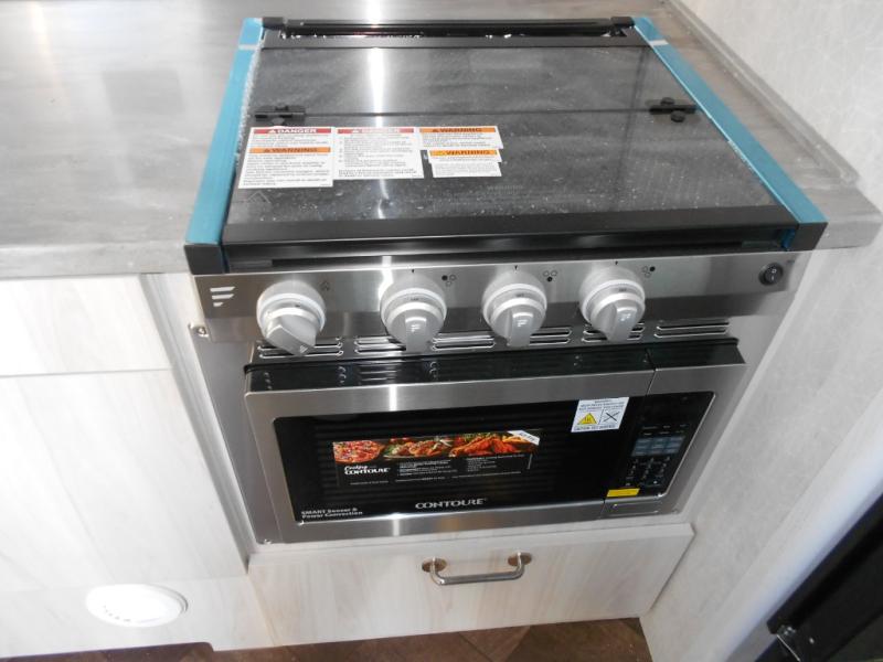What kind of an adventurer are you? Are you the kind that enjoys having modern features and a calming environment? If you are, you absolutely must check out this International travel trailer! You will love having your own little sanctuary to retreat to while you are away. The front twin beds will be easy to get in and out of, and you'll love the sunshine coming through the surrounding panoramic windows. There is also a 24" 12V DC Smart TV included in this area so you can catch up on the news. The wardrobe with a hanging bar will ensure that your clothes stay wrinkle free, and you can also use the retractable clothesline in the spacious shower to let some clothes air dry.