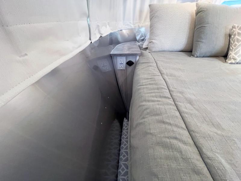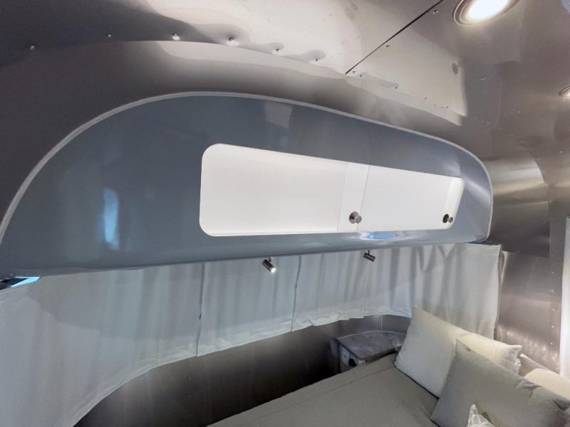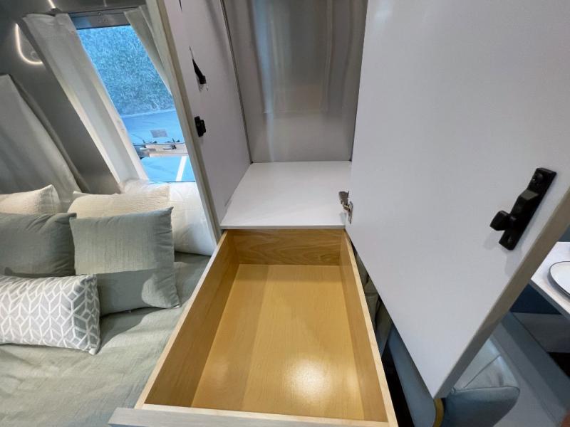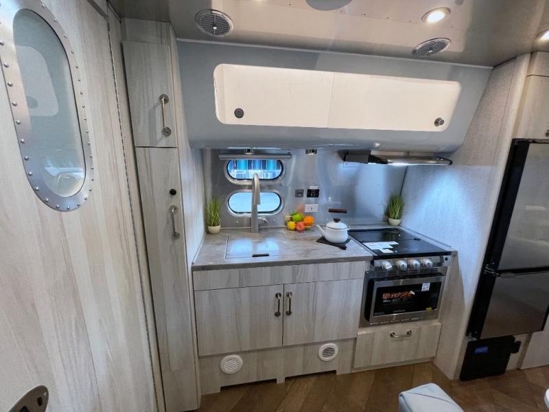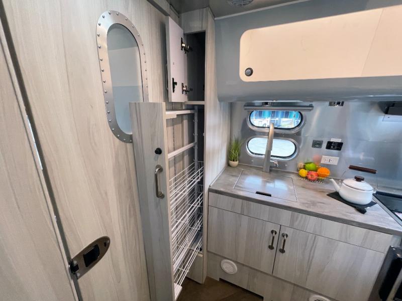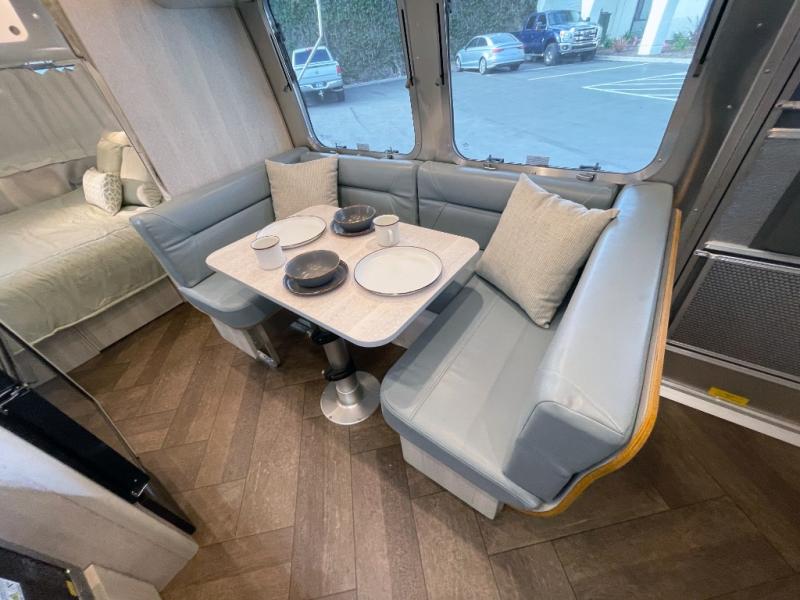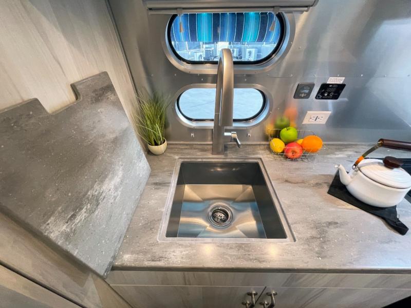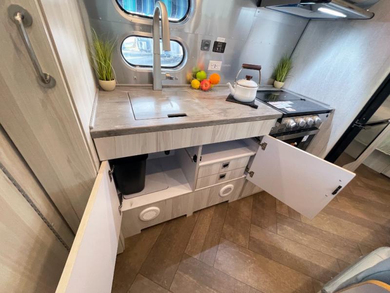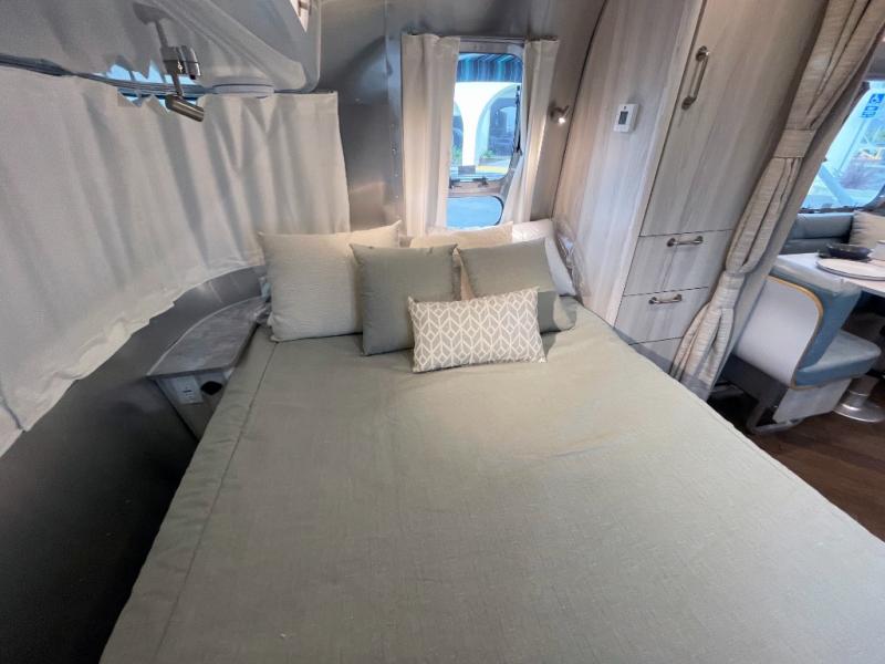 Every time you step foot into the Airstream International travel trailer, you will feel as if you are breathing in a breath of fresh air! The fresh coastal décor was inspired by the waterfront, and the stylish interior delivers a relaxing environment and comfortable luxury. The panoramic windows increase the amount of natural sunlight that streams through to the interior, but they also have blackout shades that you can close whenever you need a darkened room. The beautiful, handcrafted marine-grade Lite-Ply laminated cabinetry is an attractive base for the overhead storage lockers that have sliding doors and LED lighting. The dimmable interior LED lighting will create the perfect amount of illumination for you as you spend time indoors. The exterior has excellent features as well with its enclosed aluminum insulated heated underbelly, unique front door key with heavy-duty deadbolt, optional solar package, solar front window protection, and exterior shower with hot and cold water.