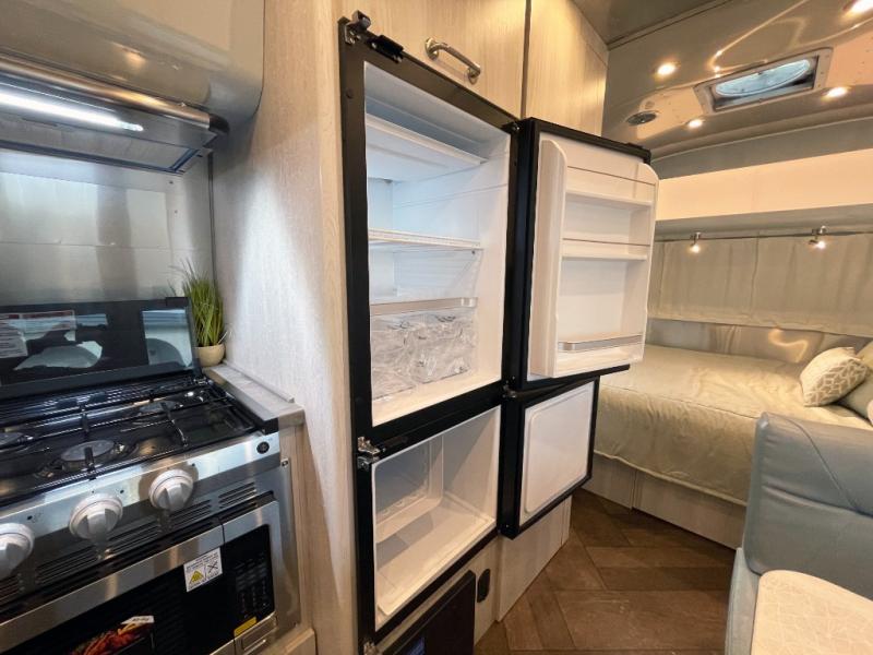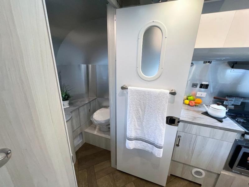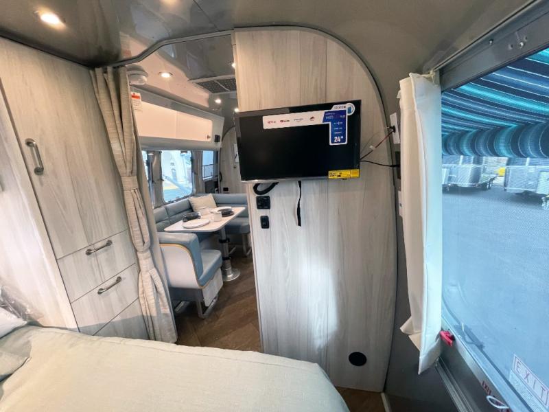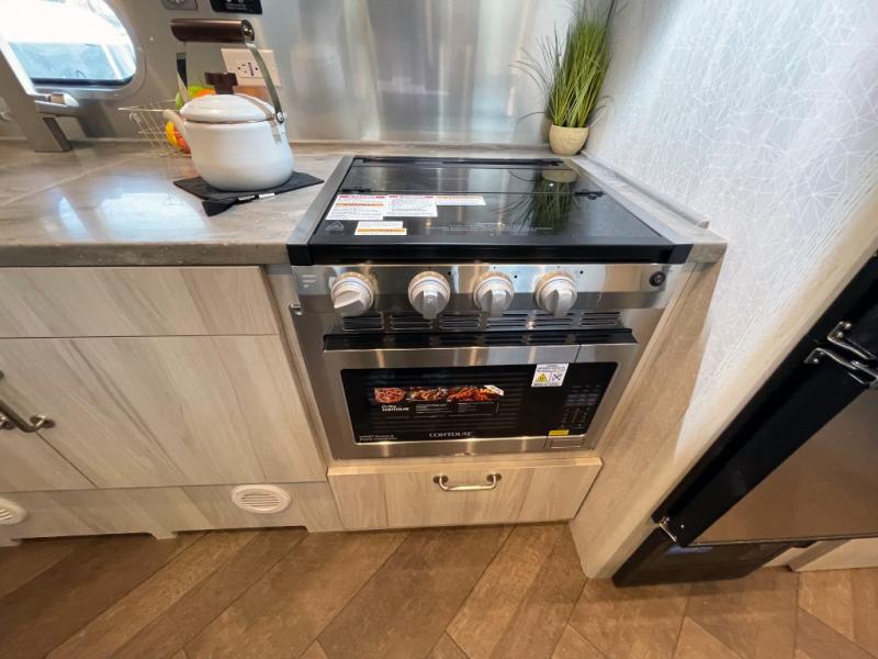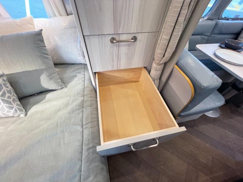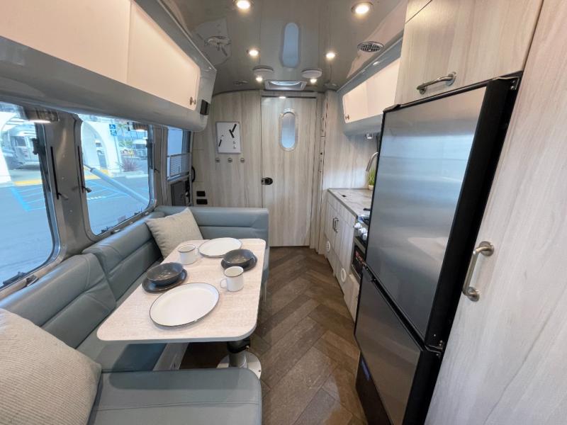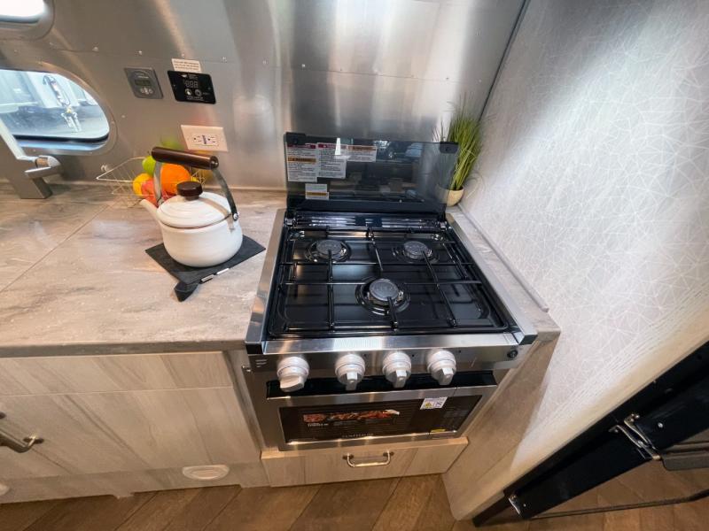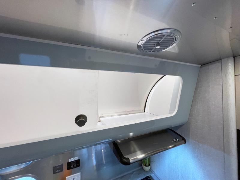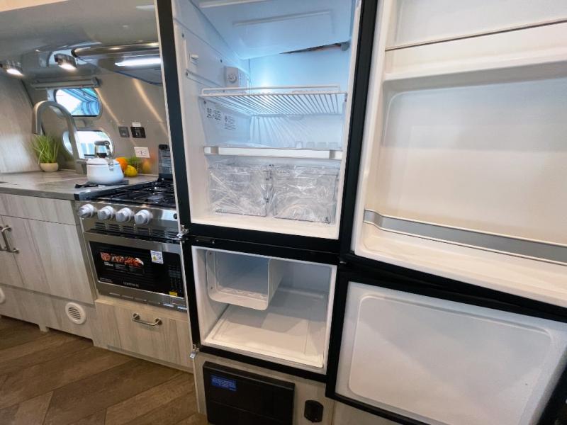 Every time you step foot into the Airstream International travel trailer, you will feel as if you are breathing in a breath of fresh air! The fresh coastal décor was inspired by the waterfront, and the stylish interior delivers a relaxing environment and comfortable luxury. The panoramic windows increase the amount of natural sunlight that streams through to the interior, but they also have blackout shades that you can close whenever you need a darkened room. The beautiful, handcrafted marine-grade Lite-Ply laminated cabinetry is an attractive base for the overhead storage lockers that have sliding doors and LED lighting. The dimmable interior LED lighting will create the perfect amount of illumination for you as you spend time indoors. The exterior has excellent features as well with its enclosed aluminum insulated heated underbelly, unique front door key with heavy-duty deadbolt, optional solar package, solar front window protection, and exterior shower with hot and cold water.