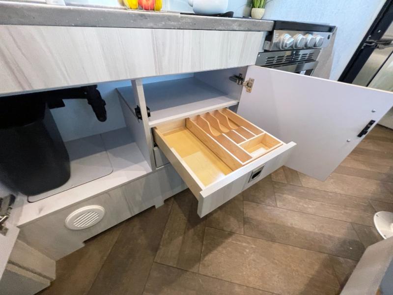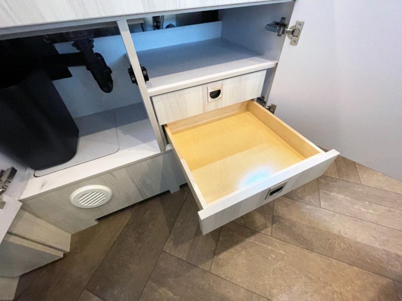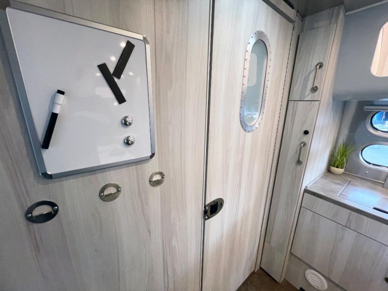 What kind of an adventurer are you? Are you the kind that enjoys having modern features and a calming environment? If you are, you absolutely must check out this International travel trailer! You will love having your own little sanctuary to retreat to while you are away. The front 60" x 75" queen bed or optional twin beds will provide a great night's rest, and you'll love the sunshine coming through the surrounding panoramic windows. There is also a 24" 12V DC Smart TV included in this area so you can catch up on the news. The wardrobe with a hanging bar will ensure that your clothes stay wrinkle free, and you can also use the retractable clothesline in the spacious shower to let some clothes air dry.