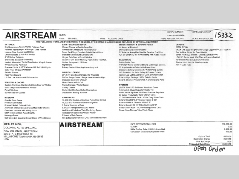 | Interior Color | Seashell/Coastal Cove |