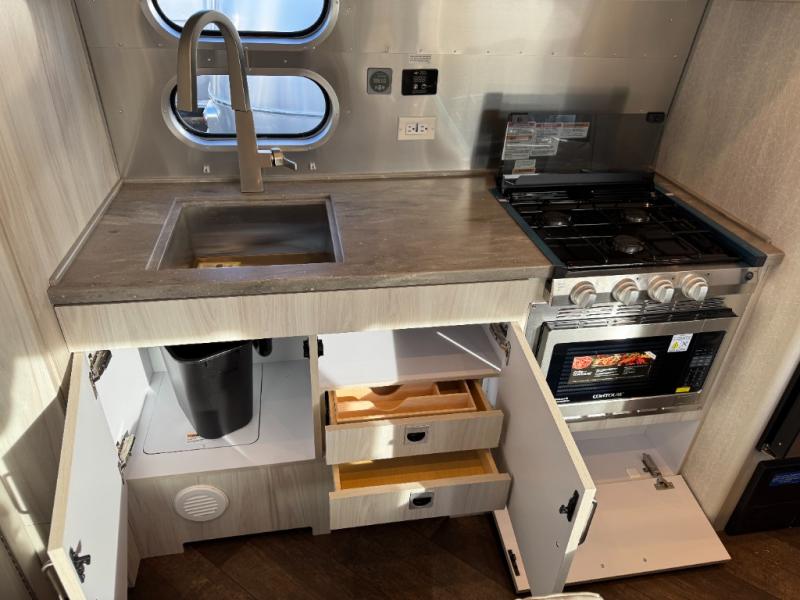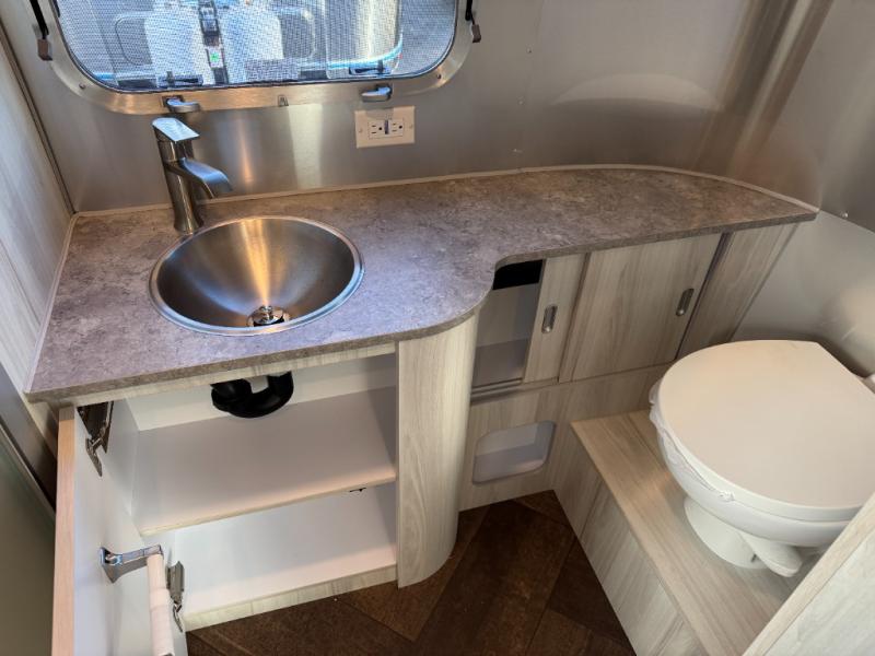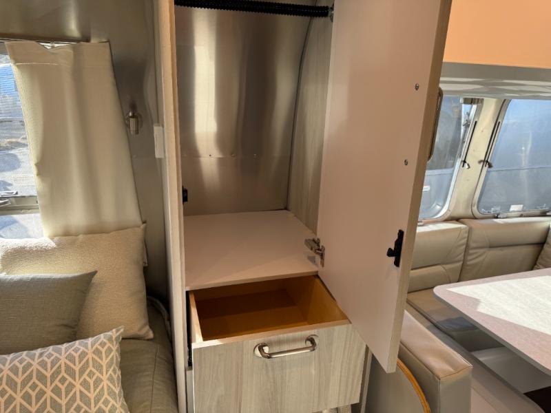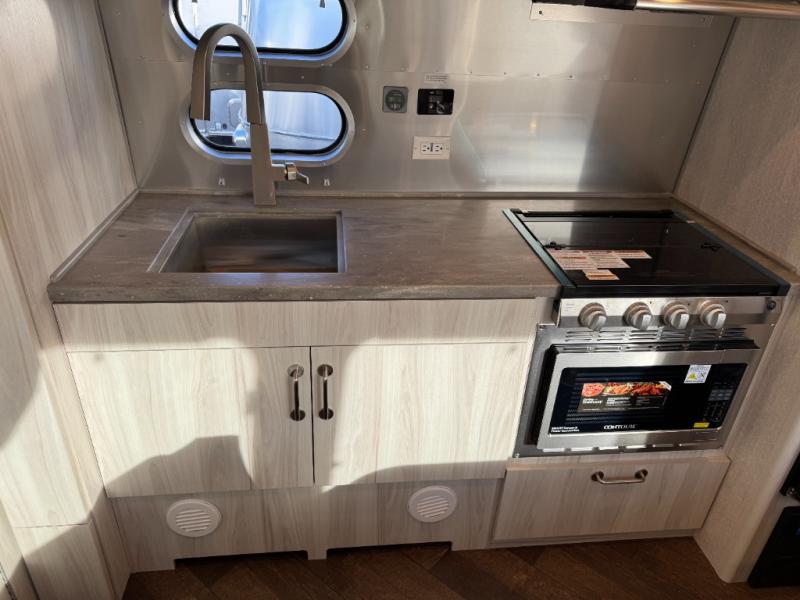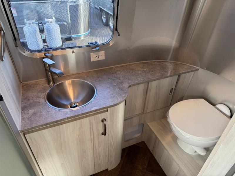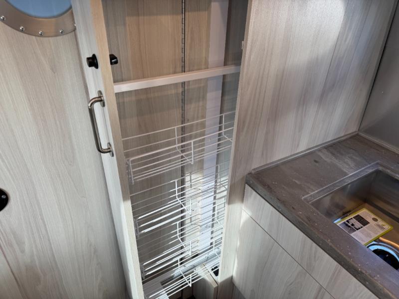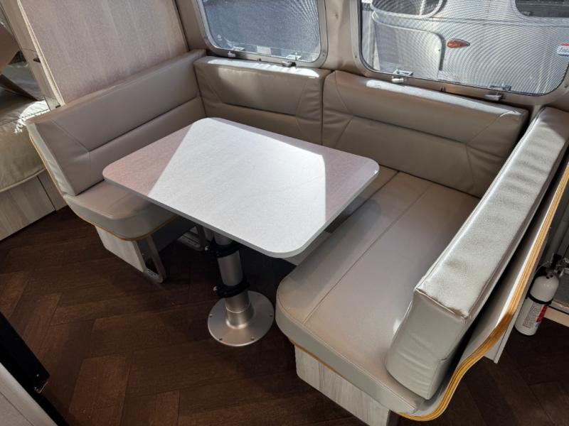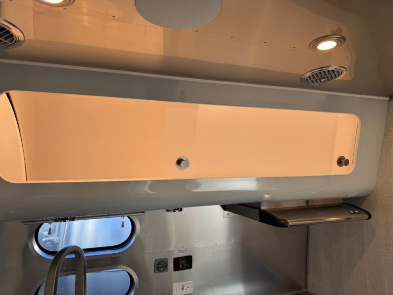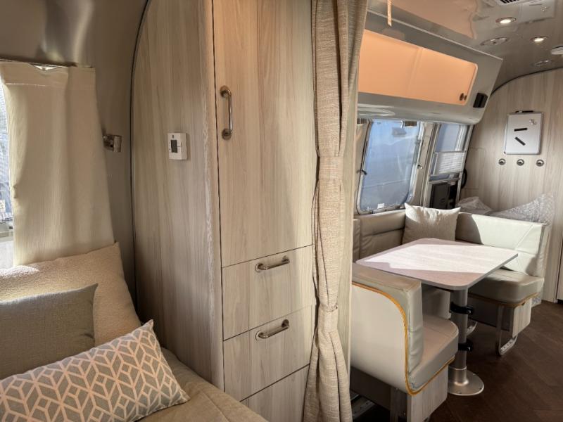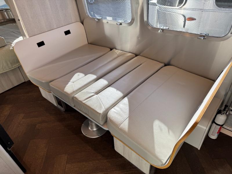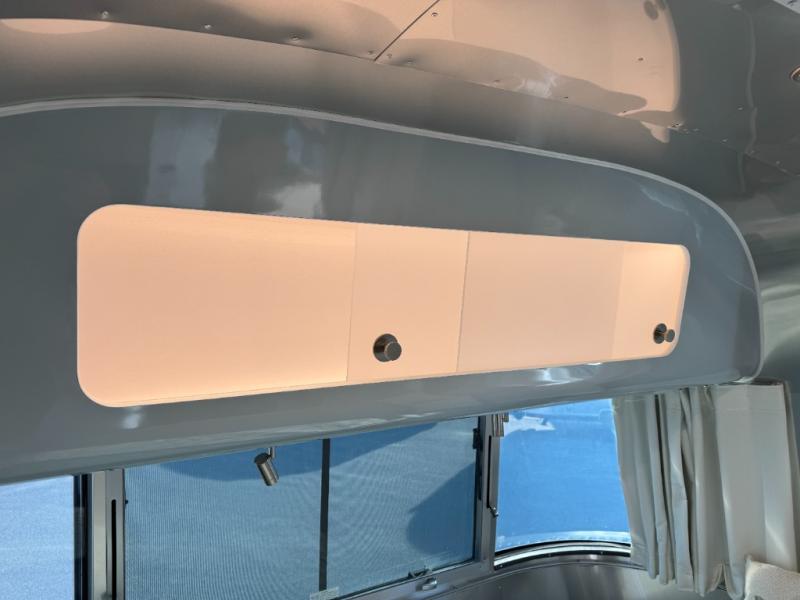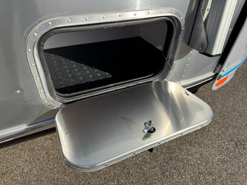 Every time you step foot into the Airstream International travel trailer, you will feel as if you are breathing in a breath of fresh air! The fresh coastal décor was inspired by the waterfront, and the stylish interior delivers a relaxing environment and comfortable luxury. The panoramic windows increase the amount of natural sunlight that streams through to the interior, but they also have blackout shades that you can close whenever you need a darkened room. The beautiful, handcrafted marine-grade Lite-Ply laminated cabinetry is an attractive base for the overhead storage lockers that have sliding doors and LED lighting. The dimmable interior LED lighting will create the perfect amount of illumination for you as you spend time indoors. The exterior has excellent features as well with its enclosed aluminum insulated heated underbelly, unique front door key with heavy-duty deadbolt, optional solar package, solar front window protection, and exterior shower with hot and cold water.