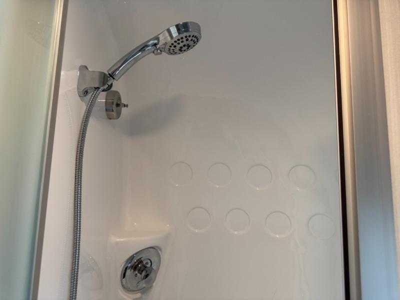 What kind of an adventurer are you? Are you the kind that enjoys having modern features and a calming environment? If you are, you absolutely must check out this International travel trailer! You will love having your own little sanctuary to retreat to while you are away. The front twin beds will be THE place to spend your mornings because you can prop yourself up against the sleeping pillows and decorative throw pillows while you sip on a hot cup of coffee and admire the amazing views coming through the surrounding panoramic windows. There is also a 24" 12V DC Smart TV included in this area so you can catch up on the news. The wardrobe with a hanging bar will ensure that your clothes stay wrinkle free, and you can also use the retractable clothes line in the spacious shower to let some clothes air dry.