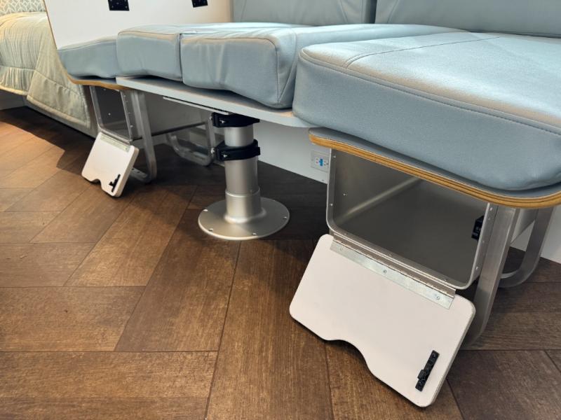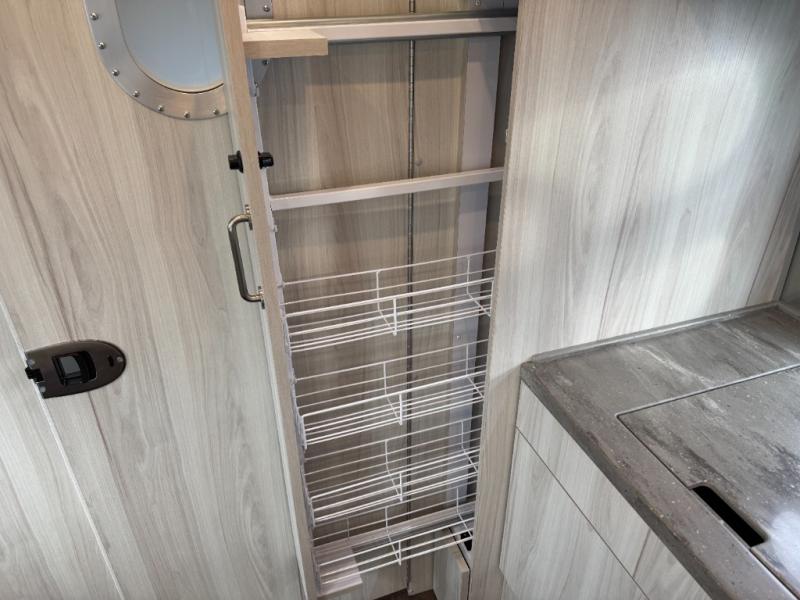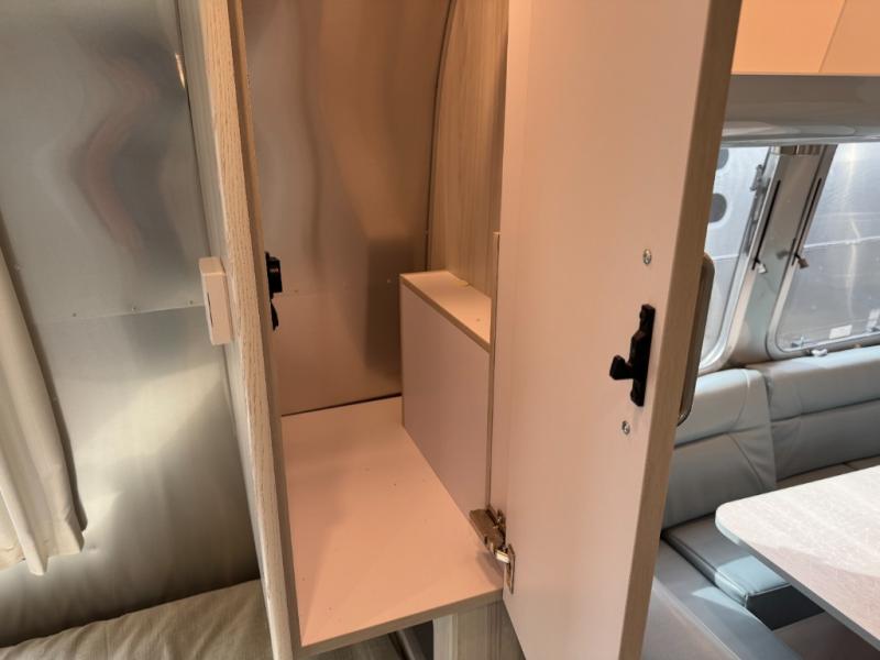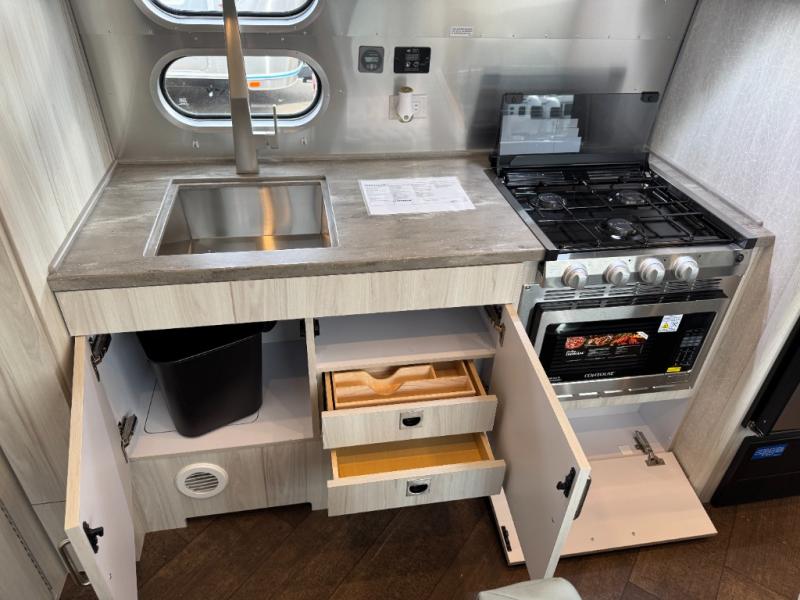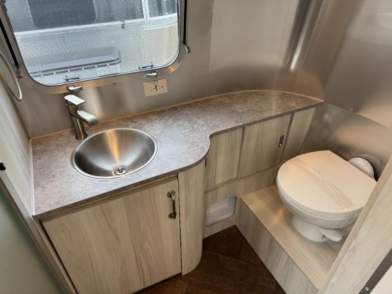 Every time you step foot into the Airstream International travel trailer, you will feel as if you are breathing in a breath of fresh air! The fresh coastal décor was inspired by the waterfront, and the stylish interior delivers a relaxing environment and comfortable luxury. The panoramic windows increase the amount of natural sunlight that streams through to the interior, but they also have blackout shades that you can close whenever you need a darkened room. The beautiful handcrafted marine-grade Lite-Ply laminated cabinetry is an attractive base for the overhead storage lockers that have sliding doors and LED lighting. The dimmable interior LED lighting will create the perfect amount of illumination for you as you spend time indoors. The exterior has excellent features as well with its enclosed aluminum insulated heated underbelly, unique front door key with heavy-duty deadbolt, optional solar package, solar front window protection, and exterior shower with hot and cold water.