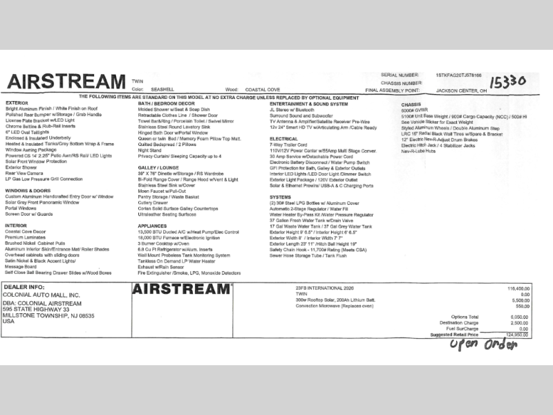 | Interior Color | Seashell/Coastal Cove |