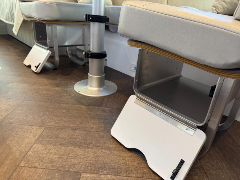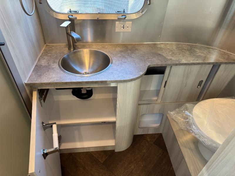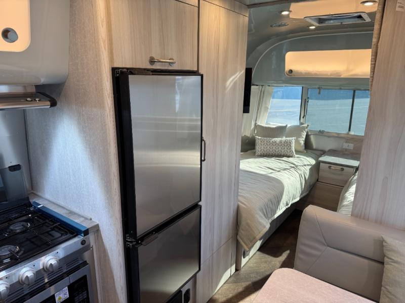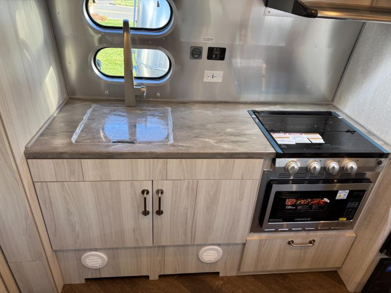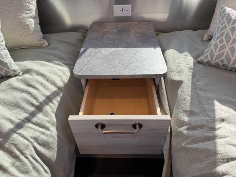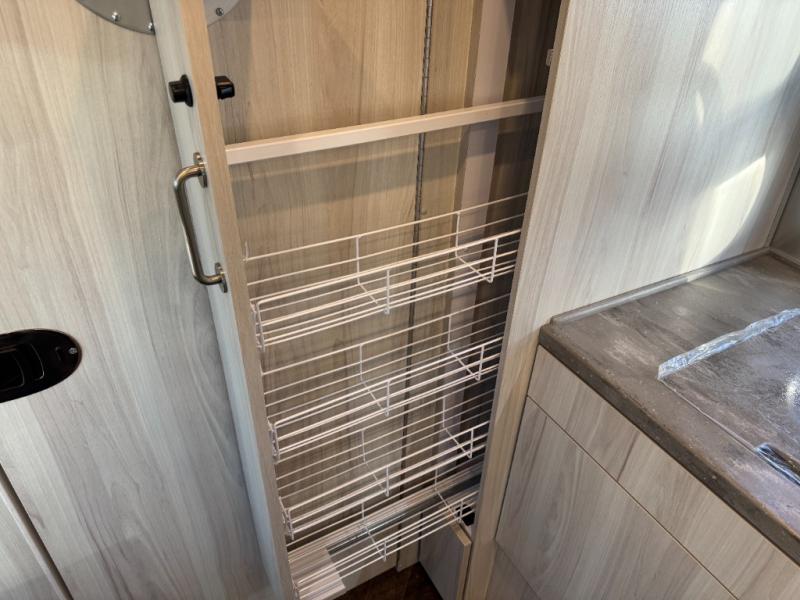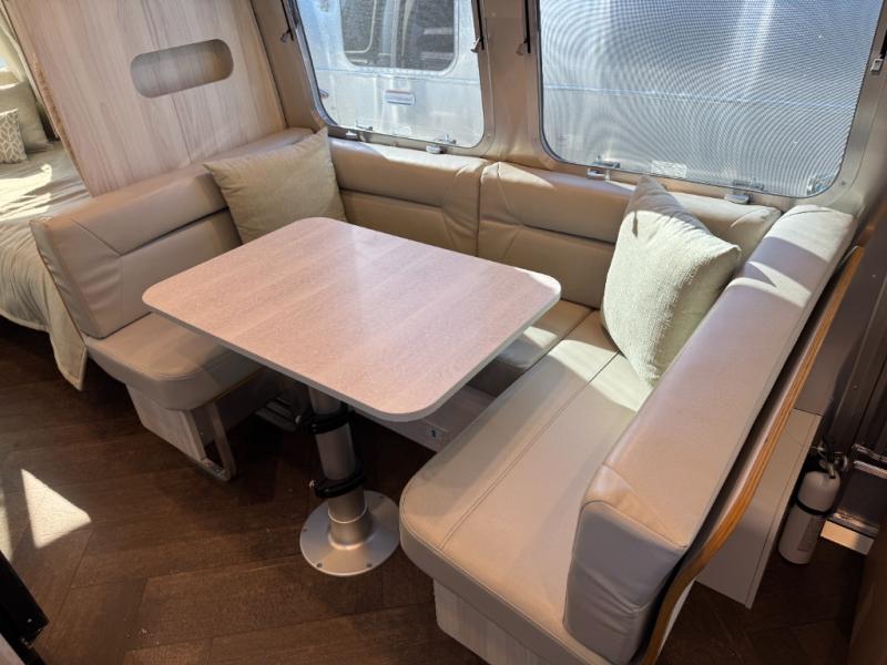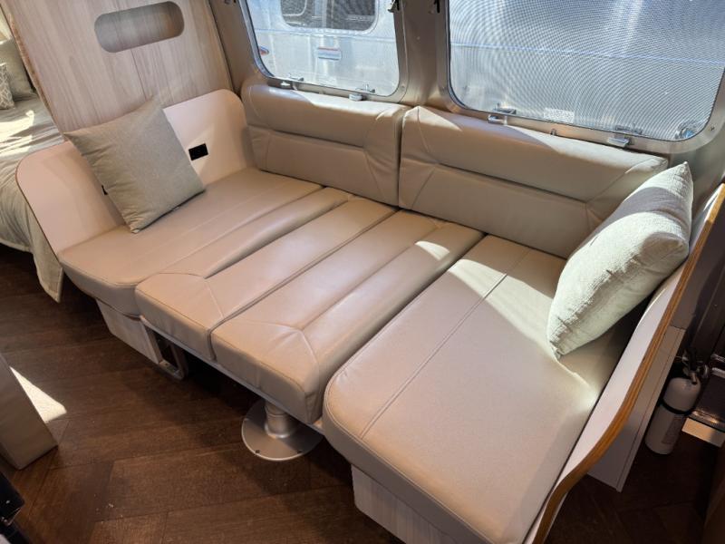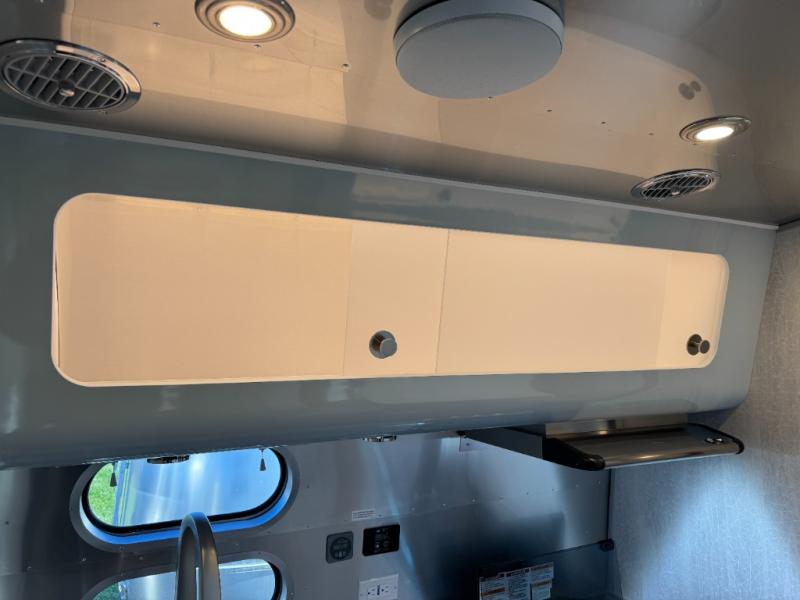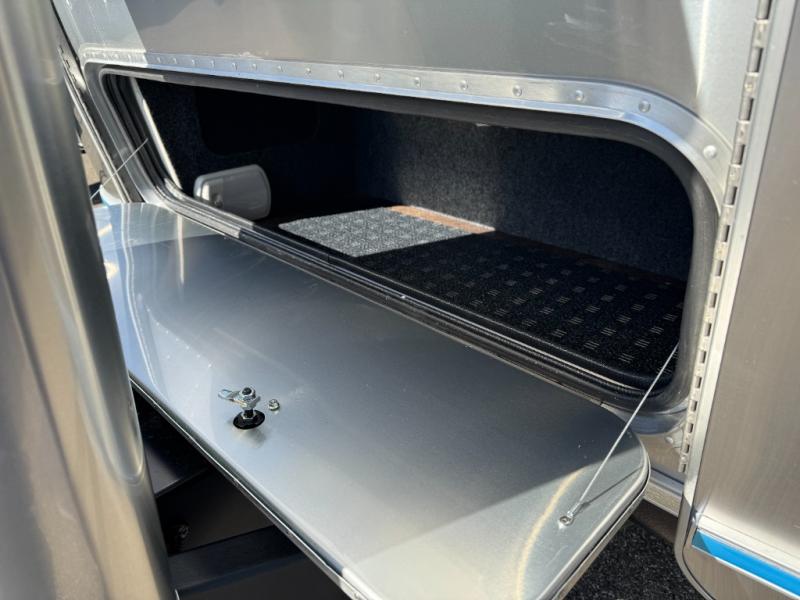 Every time you step foot into the Airstream International travel trailer, you will feel as if you are breathing in a breath of fresh air! The fresh coastal décor was inspired by the waterfront, and the stylish interior delivers a relaxing environment and comfortable luxury. The panoramic windows increase the amount of natural sunlight that streams through to the interior, but they also have blackout shades that you can close whenever you need a darkened room. The beautiful handcrafted marine-grade Lite-Ply laminated cabinetry is an attractive base for the overhead storage lockers that have sliding doors and LED lighting. The dimmable interior LED lighting will create the perfect amount of illumination for you as you spend time indoors. The exterior has excellent features as well with its enclosed aluminum insulated heated underbelly, unique front door key with heavy-duty deadbolt, optional solar package, solar front window protection, and exterior shower with hot and cold water.