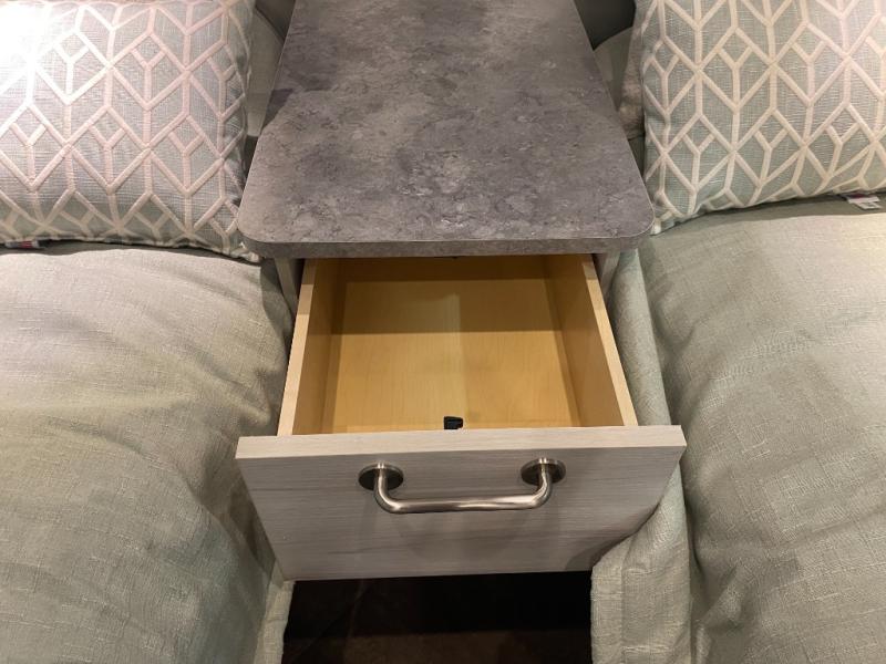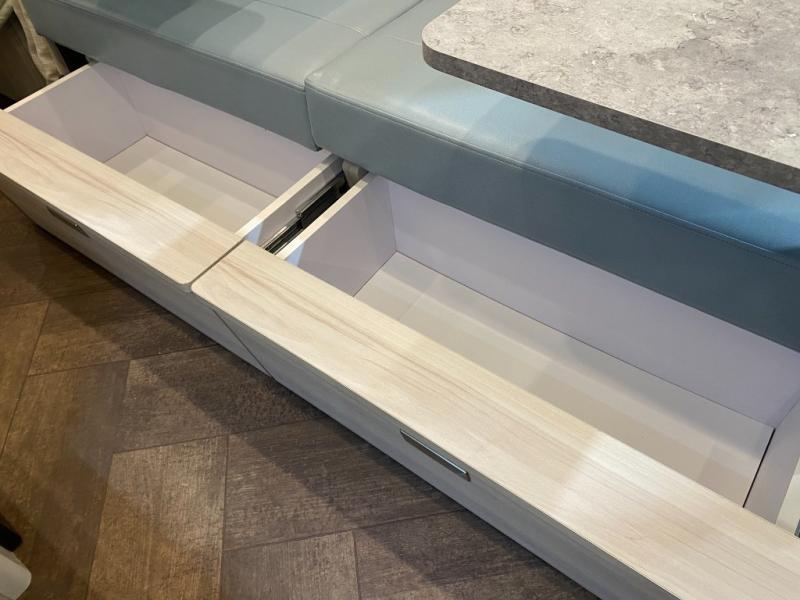 What kind of an adventurer are you? Are you the kind that enjoys having modern features and a calming environment? If you are, you absolutely must check out this International travel trailer! You will love having your own little sanctuary to retreat to while you are away. The front twin beds will be easy to get in and out of, and you'll love the sunshine coming through the surrounding panoramic windows. There is also a 24" 12V DC Smart TV included in this area so you can catch up on the news. The wardrobe with a hanging bar will ensure that your clothes stay wrinkle free, and you can also use the retractable clothesline in the spacious shower to let some clothes air dry.