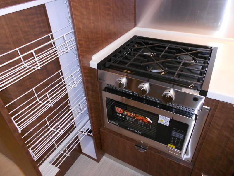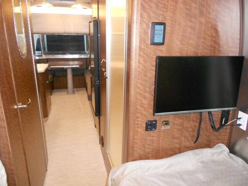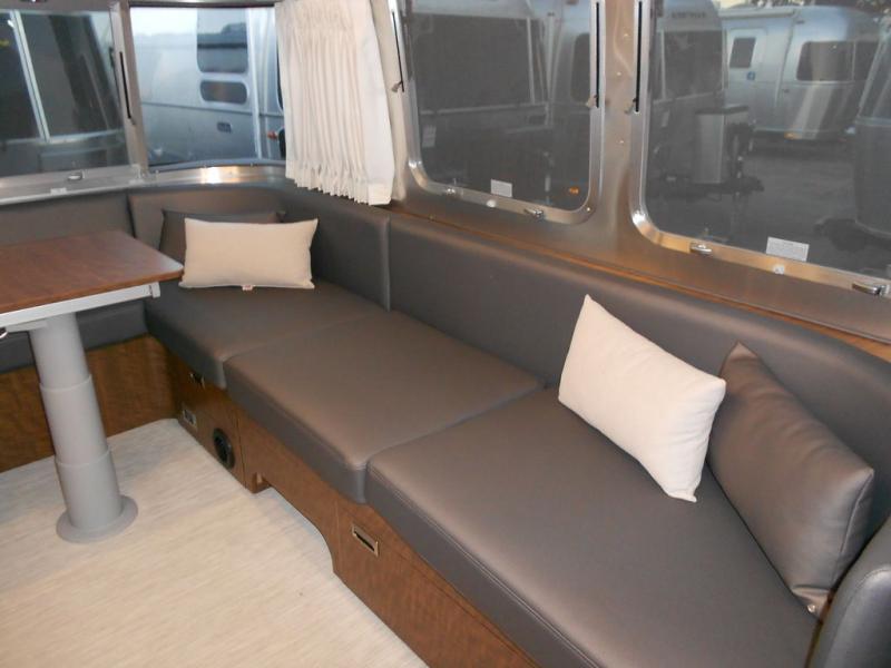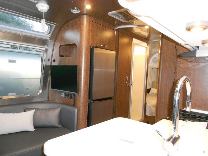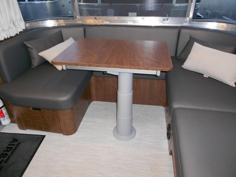 Every time you step foot into the Airstream International travel trailer, you will feel as if you are breathing in a breath of fresh air! The fresh coastal décor was inspired by the waterfront, and the stylish interior delivers a relaxing environment and comfortable luxury. The panoramic windows increase the amount of natural sunlight that streams through to the interior, but they also have blackout shades that you can close whenever you need a darkened room. The beautiful, handcrafted marine-grade Lite-Ply laminated cabinetry is an attractive base for the overhead storage lockers that have sliding doors and LED lighting. The dimmable interior LED lighting will create the perfect amount of illumination for you as you spend time indoors. The exterior has excellent features as well with its enclosed aluminum insulated heated underbelly, unique front door key with heavy-duty deadbolt, optional solar package, solar front window protection, and exterior shower with hot and cold water.