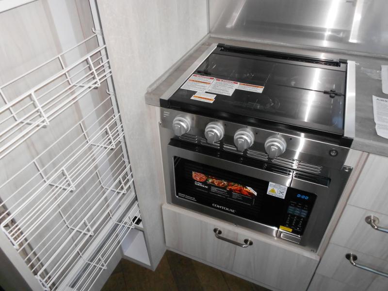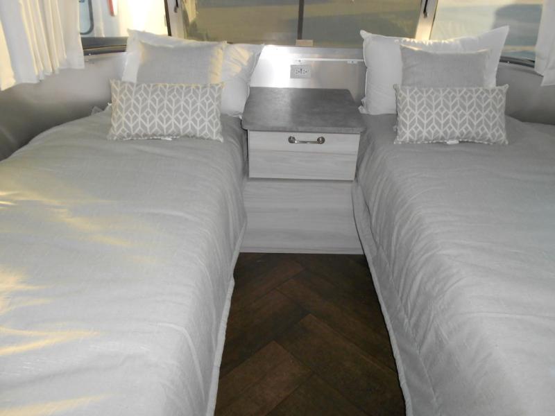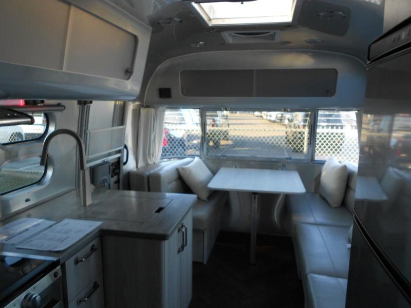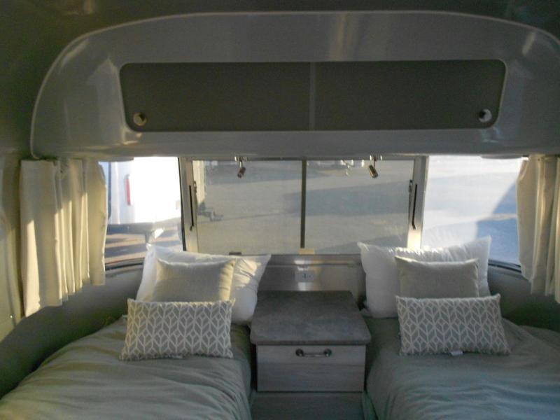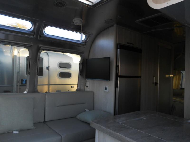 Every time you step foot into the Airstream International travel trailer, you will feel as if you are breathing in a breath of fresh air! The fresh coastal décor was inspired by the waterfront, and the stylish interior delivers a relaxing environment and comfortable luxury. The panoramic windows increase the amount of natural sunlight that streams through to the interior, but they also have blackout shades that you can close whenever you need a darkened room. The beautiful, handcrafted marine-grade Lite-Ply laminated cabinetry is an attractive base for the overhead storage lockers that have sliding doors and LED lighting. The dimmable interior LED lighting will create the perfect amount of illumination for you as you spend time indoors. The exterior has excellent features as well with its enclosed aluminum insulated heated underbelly, unique front door key with heavy-duty deadbolt, optional solar package, solar front window protection, and exterior shower with hot and cold water.