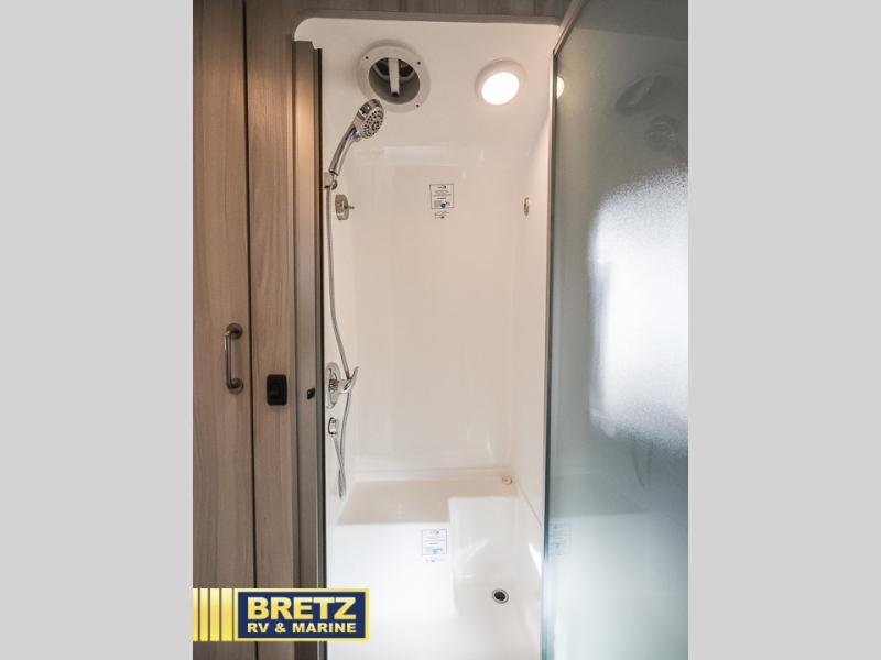 Any time spent in this travel trailer will be time well spent! The front bedroom is its own little oasis with a 60" x 75" queen bed, decorative throw pillows, and LED reading lights. And if you want the optional twin beds, you can choose that! You will also enjoy two 12V DC Smart TVs; a 27" in the galley/lounge and a 24" in the bedroom! The luxury continues on to the rest of the trailer with the inspiring galley kitchen, the Ultraleather seating, the JL stereo with Bluetooth connectivity, and the tranquil bathroom.