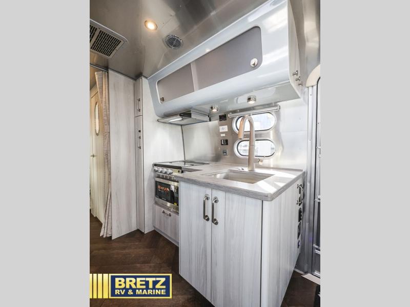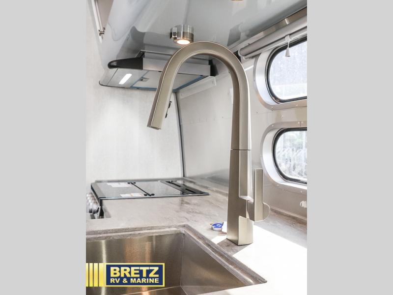 Every time you step foot into the Airstream International travel trailer, you will feel as if you are breathing in a breath of fresh air! The fresh coastal décor was inspired by the waterfront, and the stylish interior delivers a relaxing environment and comfortable luxury. The panoramic windows increase the amount of natural sunlight that streams through to the interior, but they also have blackout shades that you can close whenever you need a darkened room. The beautiful, handcrafted marine-grade Lite-Ply laminated cabinetry is an attractive base for the overhead storage lockers that have sliding doors and LED lighting. The dimmable interior LED lighting will create the perfect amount of illumination for you as you spend time indoors. The exterior has excellent features as well with its enclosed aluminum insulated heated underbelly, unique front door key with heavy-duty deadbolt, optional solar package, solar front window protection, and exterior shower with hot and cold water.