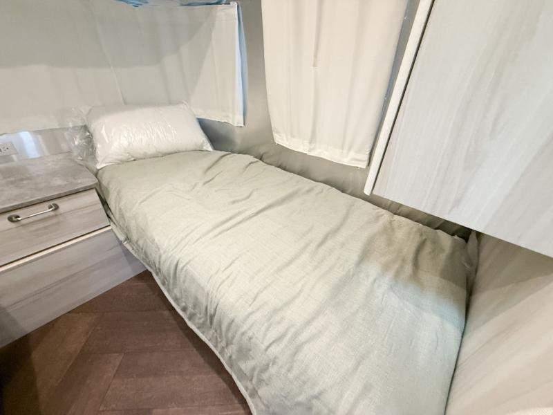This International travel trailer is just like the original 25FB model, except it has two twin-size beds in the front bedroom instead of one RV queen bed! This trailer is just as calming and enticing as you've always hoped it would be because the front bedroom is a little oasis with decorative throw pillows, LED reading lights, an LED HDTV, a wardrobe with hanging bar, and surrounding panoramic windows. And the luxury continues on to the rest of the trailer with the inspiring galley kitchen, the Ultraleather seating, the JL stereo with Bluetooth, surround sound, and subwoofer, and the tranquil bathroom.