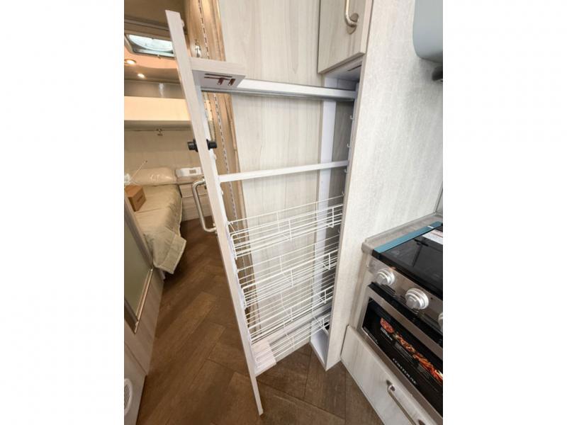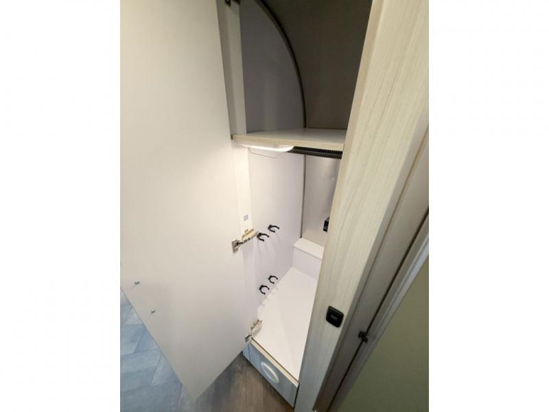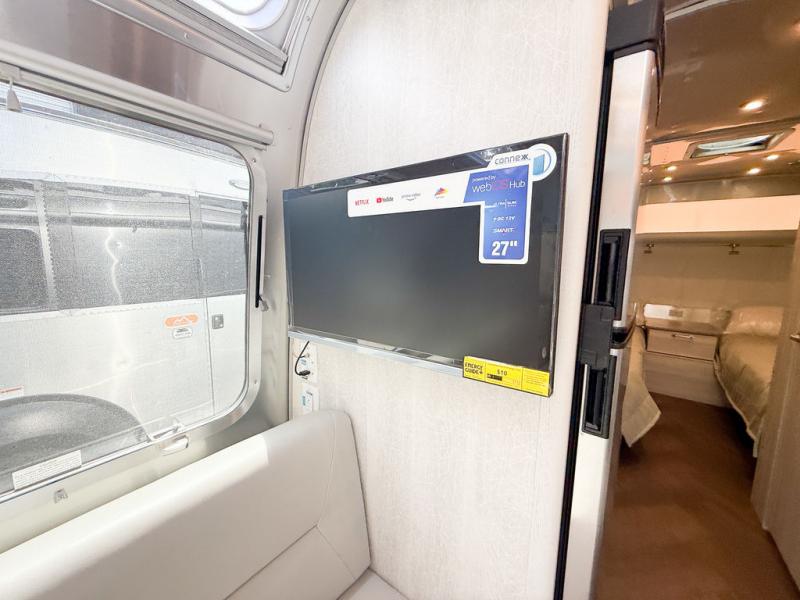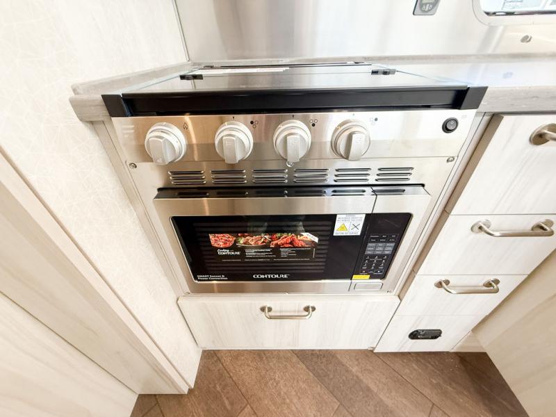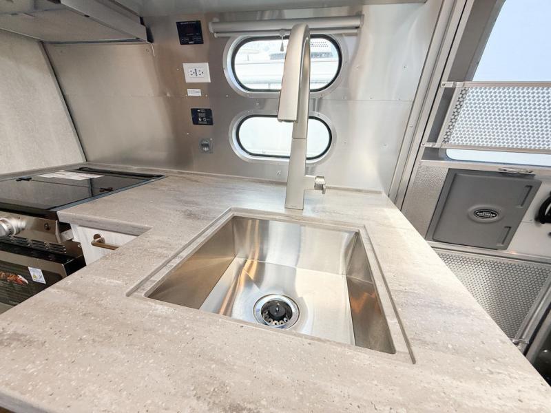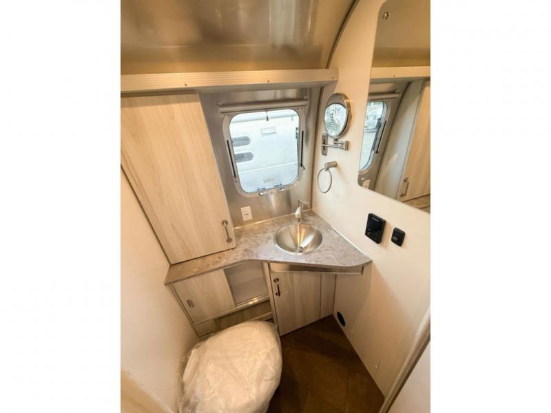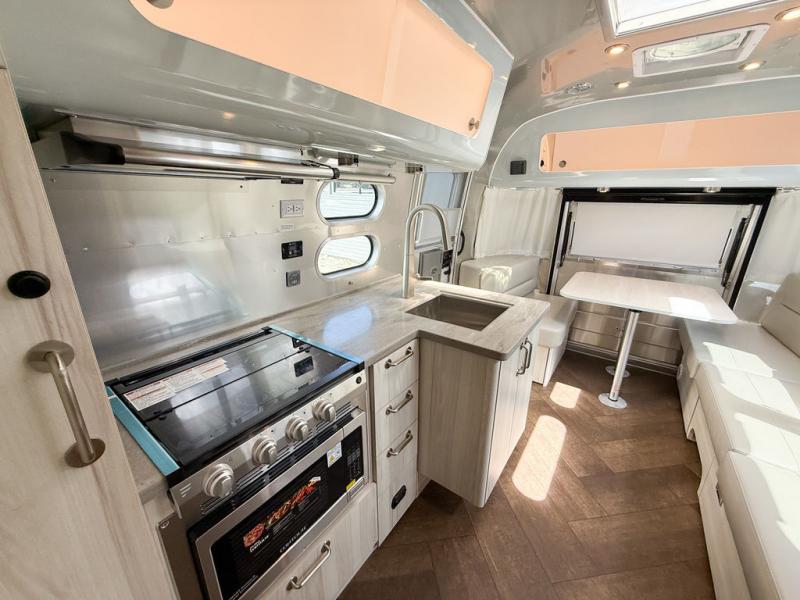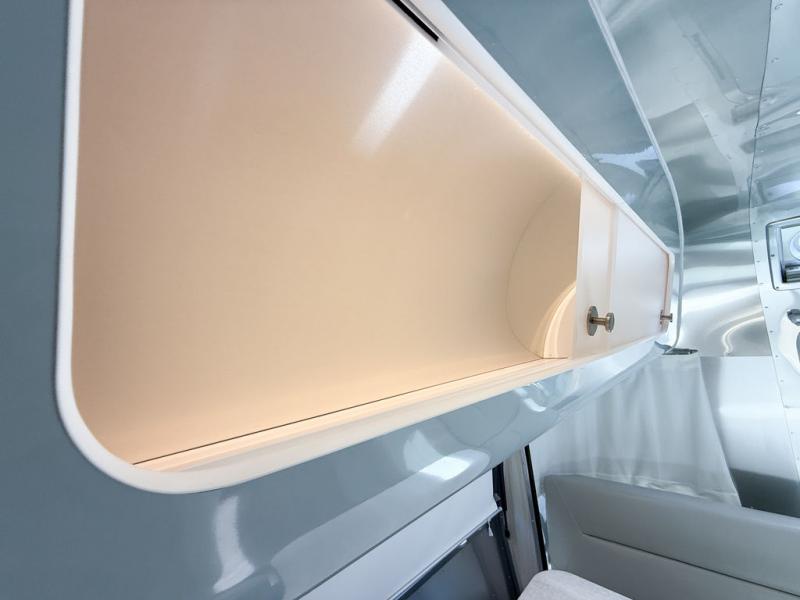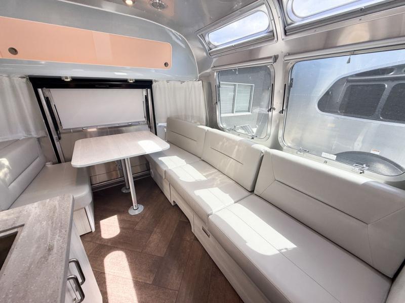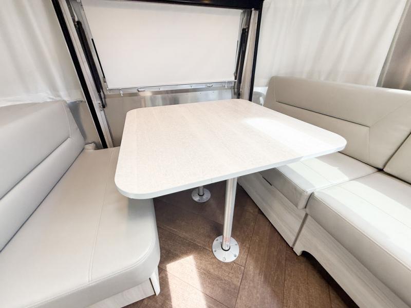 Every time you step foot into the Airstream International travel trailer, you will feel as if you are breathing in a breath of fresh air! The fresh coastal décor was inspired by the waterfront, and the stylish interior delivers a relaxing environment and comfortable luxury. The panoramic windows increase the amount of natural sunlight that streams through to the interior, but they also have blackout shades that you can close whenever you need a darkened room. The beautiful handcrafted marine-grade Lite-Ply laminated cabinetry is an attractive base for the overhead storage lockers that have sliding doors and LED lighting. The dimmable interior LED lighting will create the perfect amount of illumination for you as you spend time indoors. The exterior has excellent features as well with its enclosed aluminum insulated heated underbelly, unique front door key with heavy-duty deadbolt, optional solar package, solar front window protection, and exterior shower with hot and cold water.