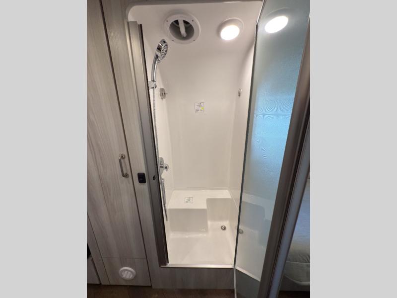 This International travel trailer is just like the original 25FB model, except it has two twin-size beds in the front bedroom instead of one RV queen bed! This trailer is just as calming and enticing as you've always hoped it would be because the front bedroom is a little oasis with decorative throw pillows, LED reading lights, an LED HDTV, a wardrobe with hanging bar, and surrounding panoramic windows. And the luxury continues on to the rest of the trailer with the inspiring galley kitchen, the Ultraleather seating, the JL stereo with Bluetooth, and the tranquil bathroom.