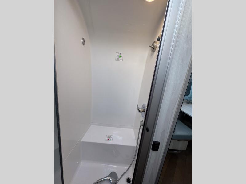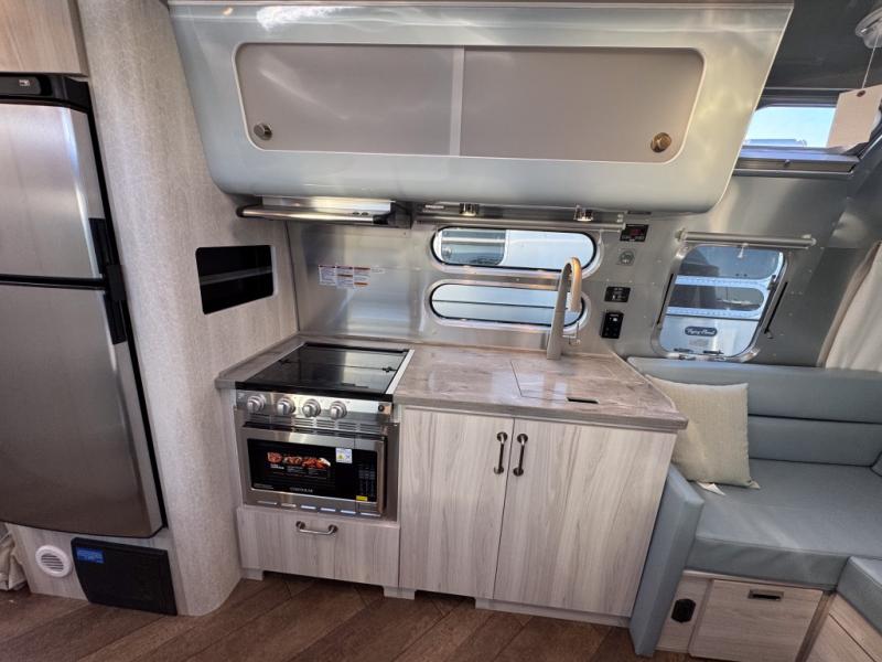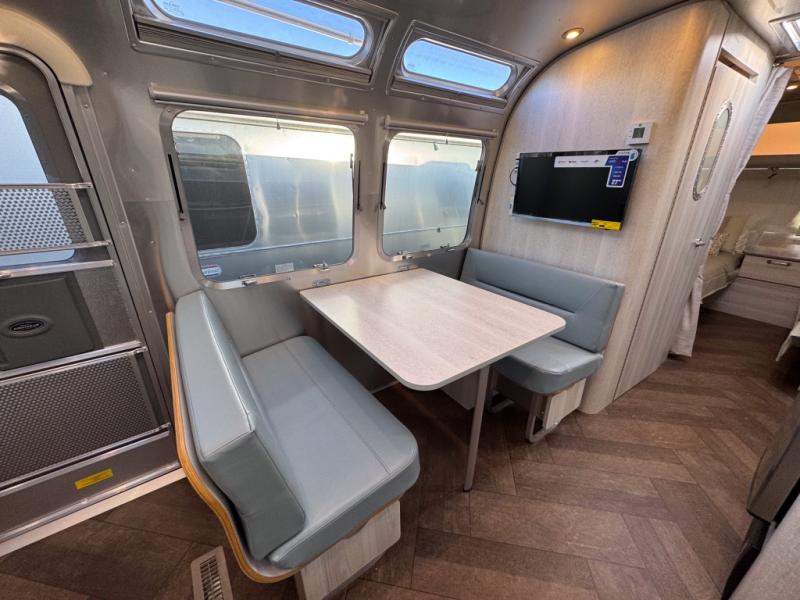 Every time you step foot into the Airstream International travel trailer, you will feel as if you are breathing in a breath of fresh air! The fresh coastal décor was inspired by the waterfront, and the stylish interior delivers a relaxing environment and comfortable luxury. The panoramic windows increase the amount of natural sunlight that streams through to the interior, but they also have blackout shades that you can close whenever you need a darkened room. The beautiful handcrafted marine-grade Lite-Ply laminated cabinetry is an attractive base for the overhead storage lockers that have sliding doors and LED lighting. The dimmable interior LED lighting will create the perfect amount of illumination for you as you spend time indoors. The exterior has excellent features as well with its enclosed aluminum insulated heated underbelly, unique front door key with heavy-duty deadbolt, optional solar package, solar front window protection, and exterior shower with hot and cold water.