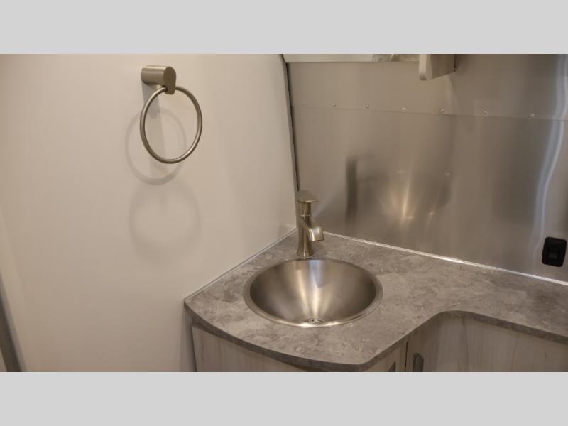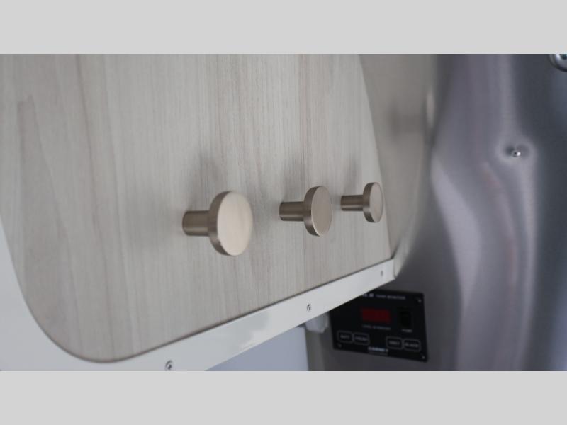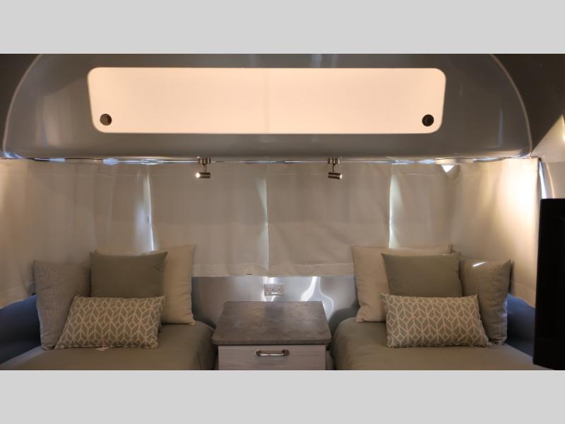 Every time you step foot into the Airstream International travel trailer, you will feel as if you are breathing in a breath of fresh air! The fresh coastal décor was inspired by the waterfront, and the stylish interior delivers a relaxing environment and comfortable luxury. The panoramic windows increase the amount of natural sunlight that streams through to the interior, but they also have blackout shades that you can close whenever you need a darkened room. The beautiful handcrafted marine-grade Lite-Ply laminated cabinetry is an attractive base for the overhead storage lockers that have sliding doors and LED lighting. The dimmable interior LED lighting will create the perfect amount of illumination for you as you spend time indoors. The exterior has excellent features as well with its enclosed aluminum insulated heated underbelly, unique front door key with heavy-duty deadbolt, optional solar package, solar front window protection, and exterior shower with hot and cold water.