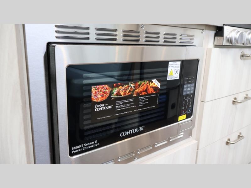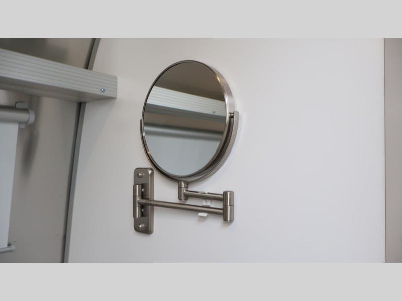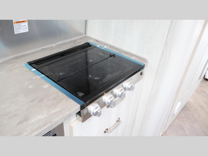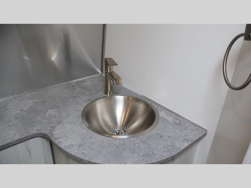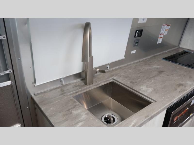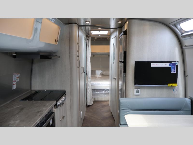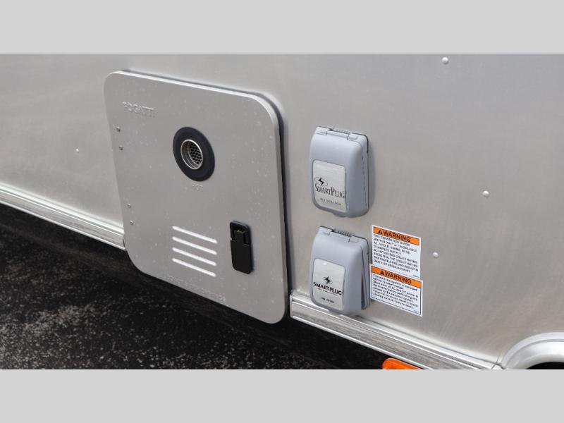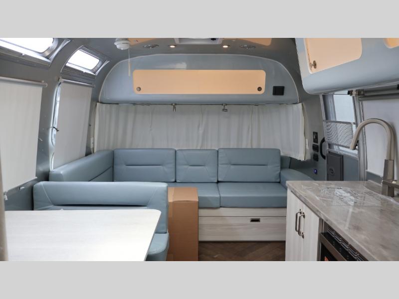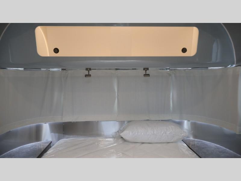 Every time you step foot into the Airstream International travel trailer, you will feel as if you are breathing in a breath of fresh air! The fresh coastal décor was inspired by the waterfront, and the stylish interior delivers a relaxing environment and comfortable luxury. The panoramic windows increase the amount of natural sunlight that streams through to the interior, but they also have blackout shades that you can close whenever you need a darkened room. The beautiful handcrafted marine-grade Lite-Ply laminated cabinetry is an attractive base for the overhead storage lockers that have sliding doors and LED lighting. The dimmable interior LED lighting will create the perfect amount of illumination for you as you spend time indoors. The exterior has excellent features as well with its enclosed aluminum insulated heated underbelly, unique front door key with heavy-duty deadbolt, optional solar package, solar front window protection, and exterior shower with hot and cold water.