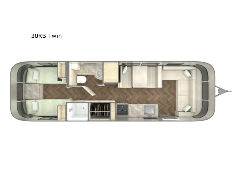 Airstream International travel trailer 30RB Twin highlights: