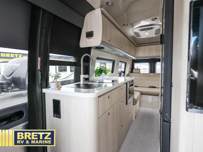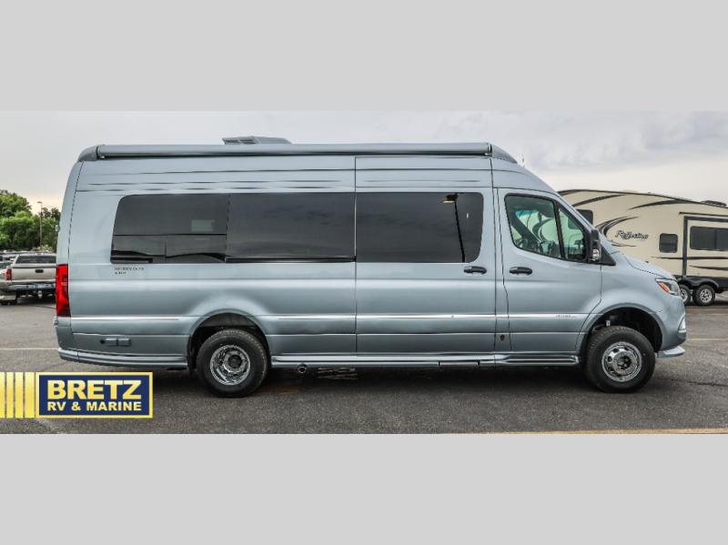 The Interstate 19GT Class B diesel motorhome by Airstream is as nimble as it is luxurious. It sits on the durable Mercedes-Benz Sprinter 2500 chassis with a 2.0L 4-cylinder high output diesel engine. There is also a Mercedes-Benz Adaptive ESP (electronic stability program), an MBUX infotainment system, and all-wheel drive to make the drive that much easier. There are many convenient exterior features such as a power rear screen, an exterior shower with hot and cold water, and a power armless awning with auto-retract. You will love the sophisticated interior with its marine woven synthetic flooring, power window shades, Ultraleather seating, and Airstream's signature aluminum ceiling and trim!