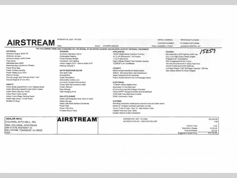 Airstream Interstate 19 Class B diesel motorhome Std. Model highlights: