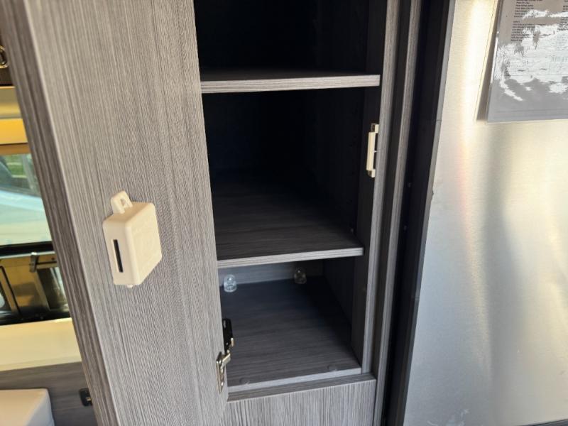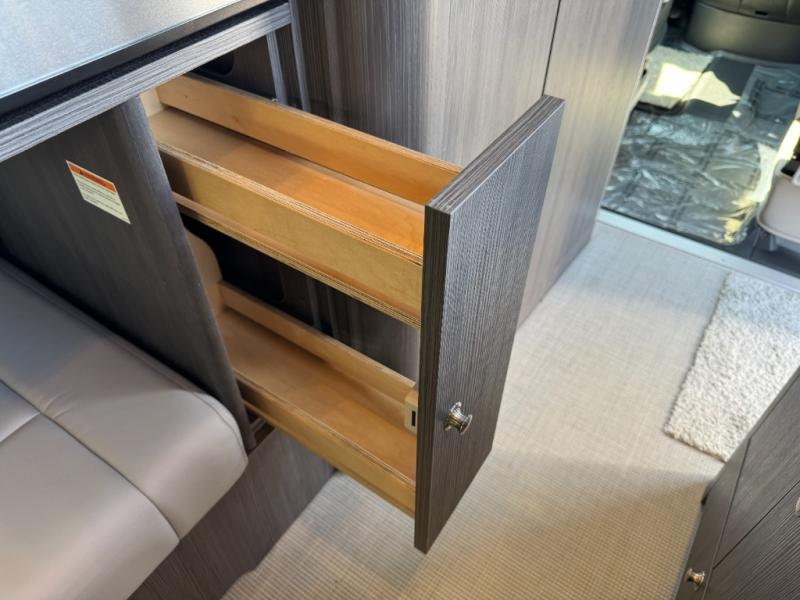 Your adventures are made complete in this 19' coach that can sleep two comfortably. When you arrive at the campground, you can prepare lunch on the two burner cooktop with an integrated cover, or use the convection microwave. There is also a slide out pantry and a 3.2 cu. ft. 12V refrigerator and freezer for your food storage. The rear sofa/bed and side seats convert to a lay-flat bed, giving you the largest best in its class, plus there is a convenient wet bath on board to stay clean throughout your trip.