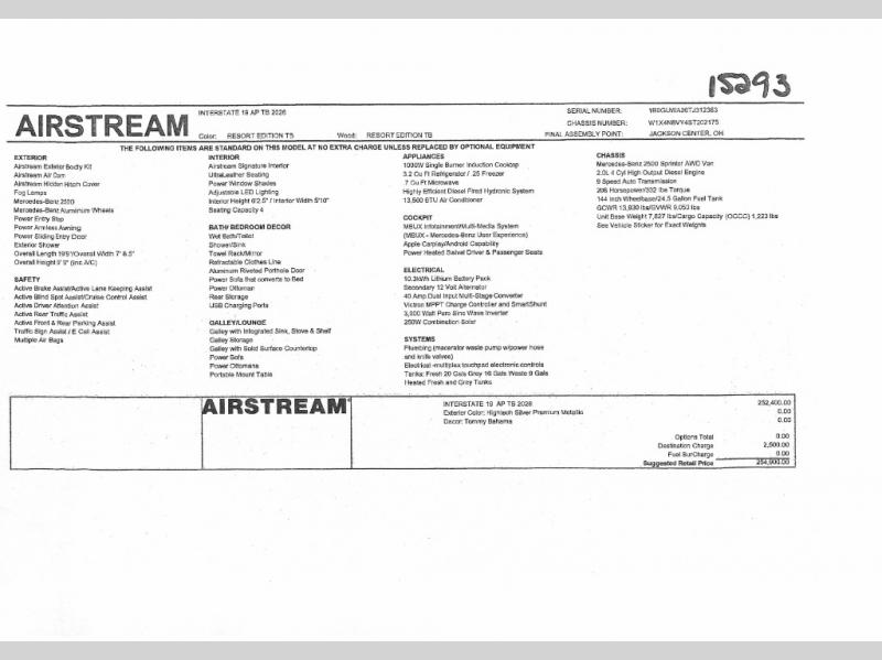 The Interstate 19GT Class B diesel motorhome by Airstream is as nimble as it is luxurious. It sits on the durable Mercedes-Benz Sprinter 2500 chassis with a 2.0L 4-cylinder high output diesel engine. There is also a Mercedes-Benz Adaptive ESP (electronic stability program), an MBUX infotainment system, and all-wheel drive to make the drive that much easier. There are many convenient exterior features such as a power rear screen, an exterior shower with hot and cold water, and a power armless awning with auto-retract. You will love the sophisticated interior with its marine woven synthetic flooring, power window shades, Ultraleather seating, and Airstream's signature aluminum ceiling and trim!