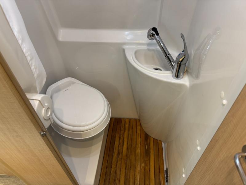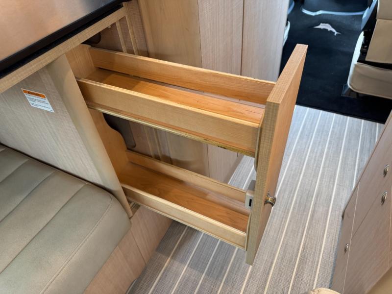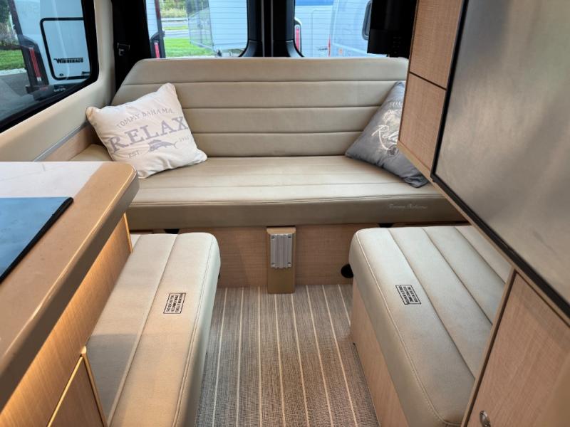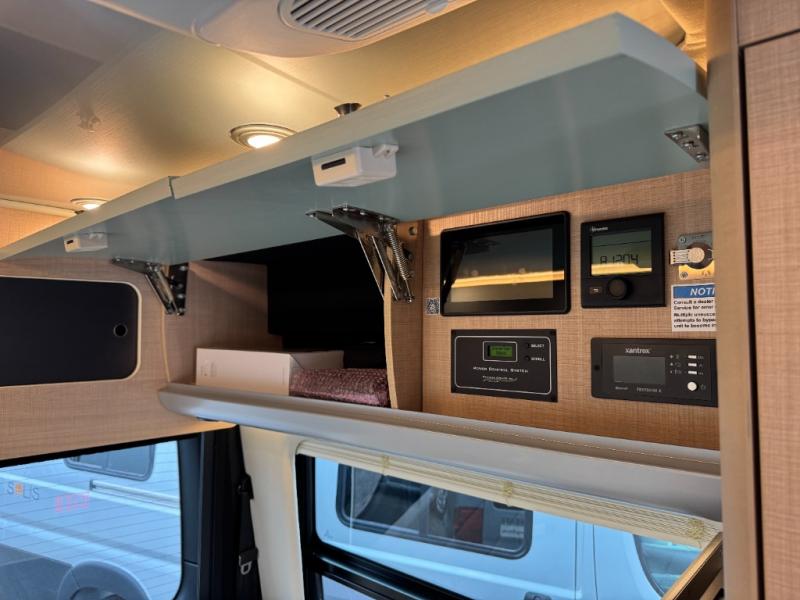 Your adventures are made complete in this 19' coach that can sleep two comfortably. When you arrive at the campground, you can prepare lunch on the single burner induction cooktop, or use the roof locker microwave. There is also a slide out pantry and a 3.2 cu. ft. 12V refrigerator and freezer for your food storage. The rear sofa/bed and side seats convert to a lay-flat bed, giving you the largest best in its class, plus there is a convenient wet bath on board to stay clean throughout your trip.