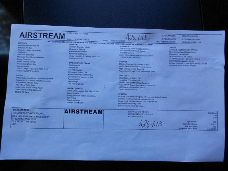 Airstream Interstate 19GT Class B diesel motorhome Std. Model highlights: