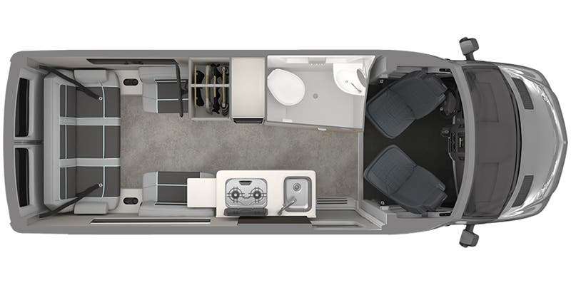 Your adventure-ready home on wheels: the 2026 Airstream Interstate 19. Space-saving sleep solutions fit 3 people. Your mobile kitchen includes all the essentials for breakfast, lunch, or dinner. Ample seating and panoramic windows create the perfect living room on wheels. Clean up with ease in the center bathroom, complete with shower and toilet facilities. Energy-efficient temperature systems help save power on the road. Secure exterior compartments make loading and unloading simple. Tank layout allows for quick fill and discharge at stations or campgrounds. Balance and weight distribution provide a smooth driving experience. Upgrade packages may include outdoor kitchens, speakers, or showers. Contact Campers Inn RV Tucson or stop by our Tucson location to explore this unit.