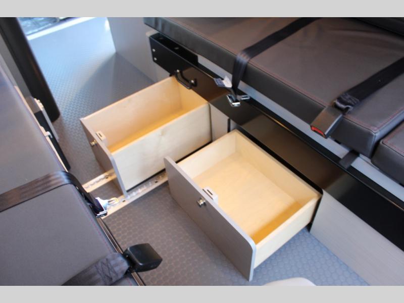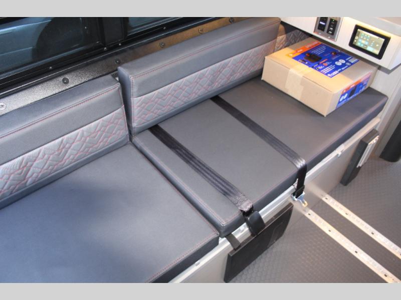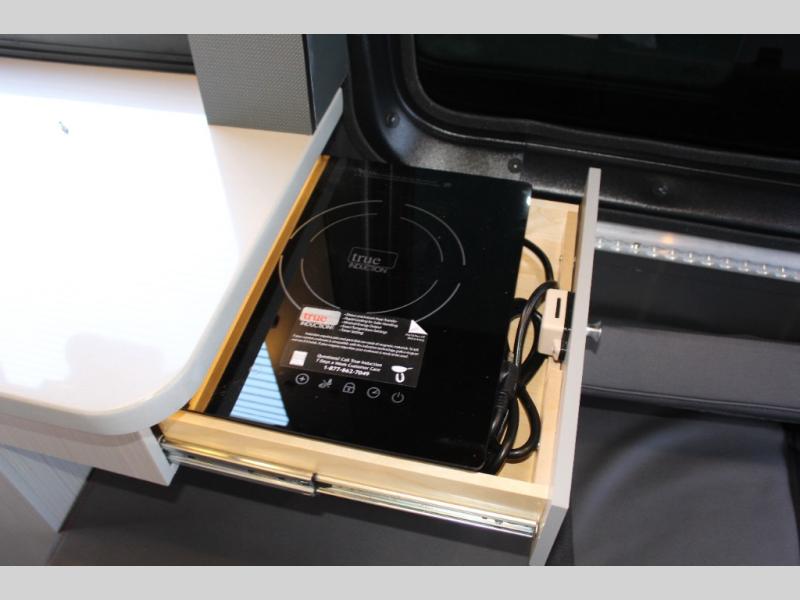 This motorhome is set apart with its flexibility! The bench seating area combined with multiple table mounts make for the perfect gathering spot to play games and enjoy meals prepared with the induction cooktop (stowable), .7 cu. ft. locker microwave, 3.1 cu. ft. refrigerator/.33 cu. ft. freezer, and soft close drawers with locking hardware for your utensils. The swiveling captain's chairs spin around to face the interior area for more seating options. You can effortlessly load up your bikes, kayaks, and fishing gear with the L-track system and know that it will stay in place, and the flexible living and sleeping space will allow you to configure it to fit your needs!