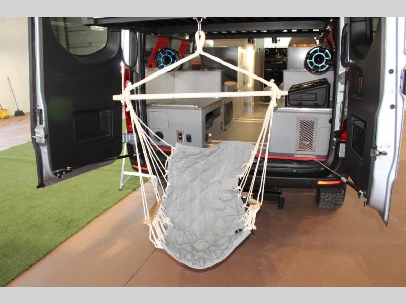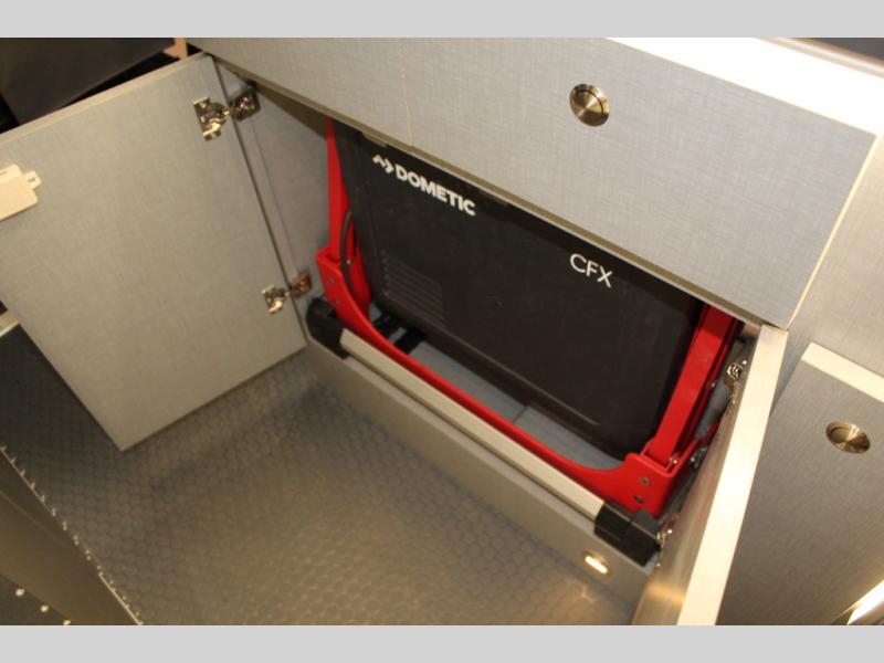 You are sure to love every minute of every adventure in this coach for two! The three-position platform bed allows you to configure it how you want it to best fit your needs, and the convenient wet bath on board lets you clean up each day. When you've worked up an appetite, you can make lunch indoors or outdoors on the portable single induction burner, or you can use the 0.7 cu. ft. locker microwave. There is also a portable refrigerator with an articulating mount for exterior use as well. And a modular table system includes interior table mounts and an exterior mount on the rear door hinge if you want to work outdoors.