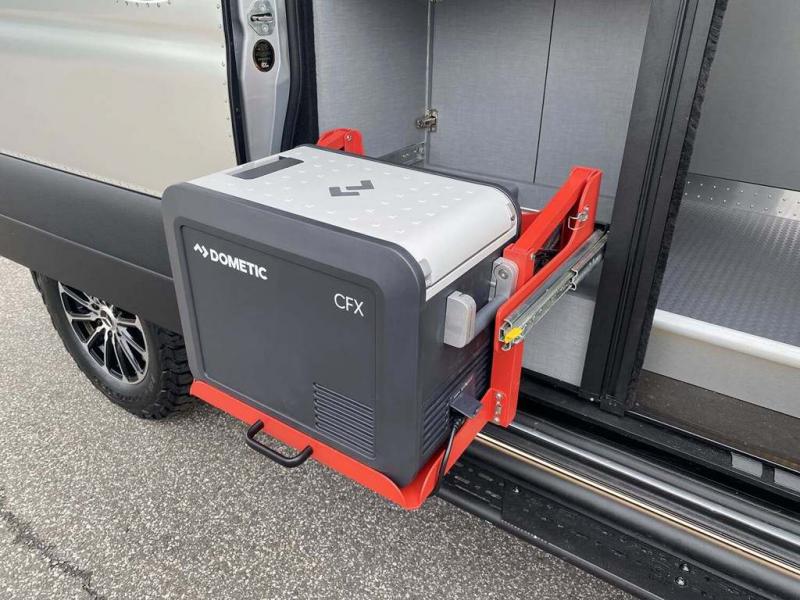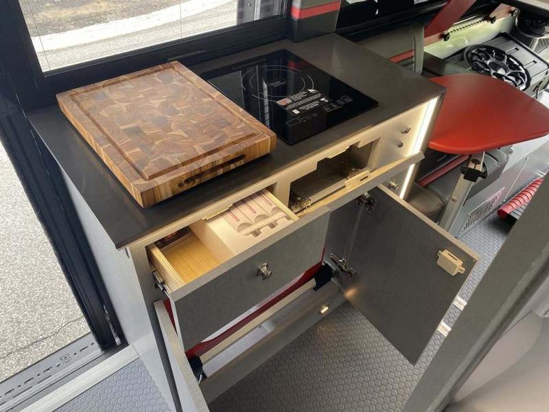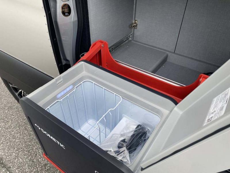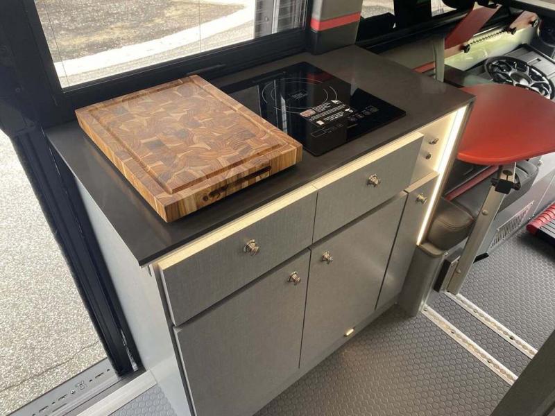 You are sure to love every minute of every adventure in this coach for two! The three-position platform bed allows you to configure it how you want it to best fit your needs, and the convenient wet bath on board lets you clean up each day. When you've worked up an appetite, you can make lunch indoors or outdoors on the stowable single induction burner, or you can use the 0.7 cu. ft. locker microwave. There is also a Dometic CFX3 powered, portable refrigerator with an articulating mount for exterior use as well. And a modular table system includes interior table mounts and an exterior mount on the rear door hinge if you want to work outdoors.