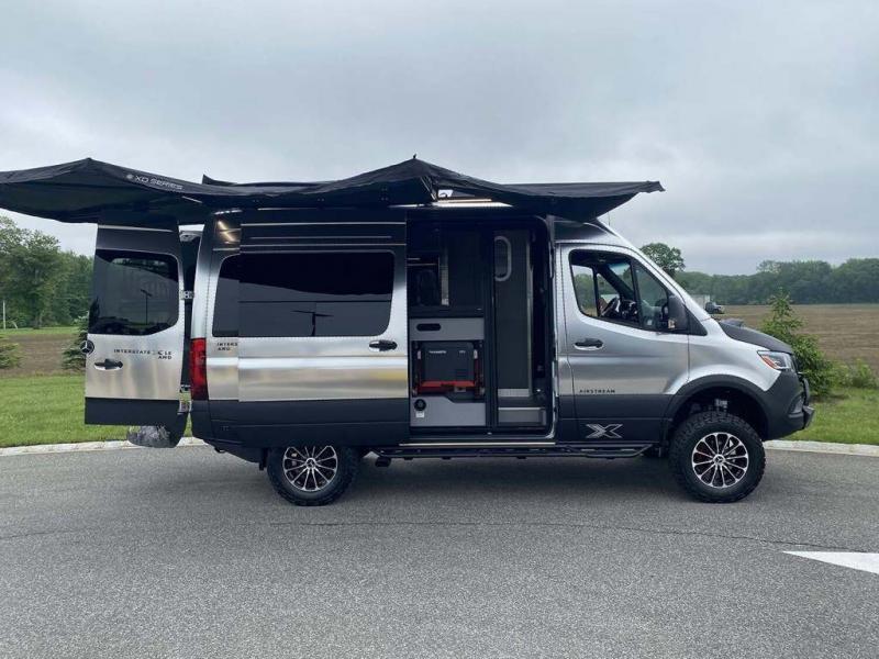 Adventure is closer than you think with the Interstate 19X LE Outland Edition by Airstream. This Class B diesel adventure van sits on the durable Mercedes-Benz Sprinter 2500 AWD chassis to help tackle tougher terrain. There are also all season-all terrain rugged on/off road tires, an upgraded suspension and improved ground clearance. Inside, you will love the COB Series dimmable LED strip lights and cabinet accent lights, along with the aluminum Aircraft L-track storage system, and the Kenwood sound system to keep the party going!