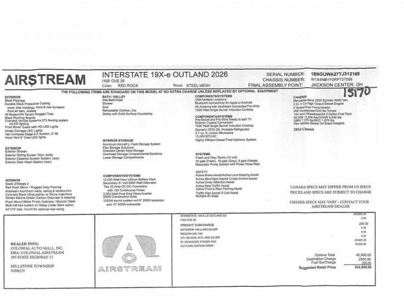 Airstream Interstate 19X LE Outland Edition Class B diesel motorhome Std. Model highlights: