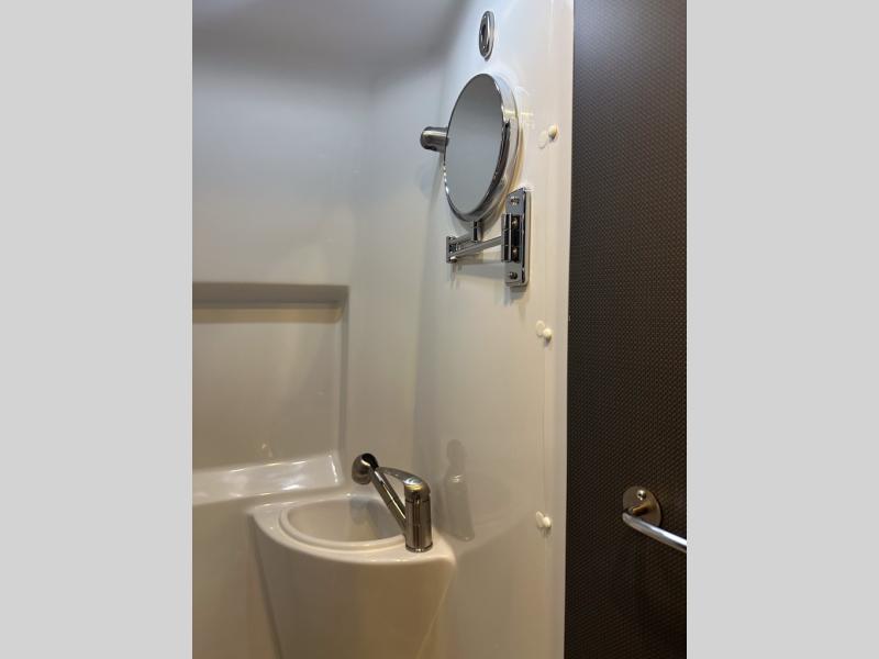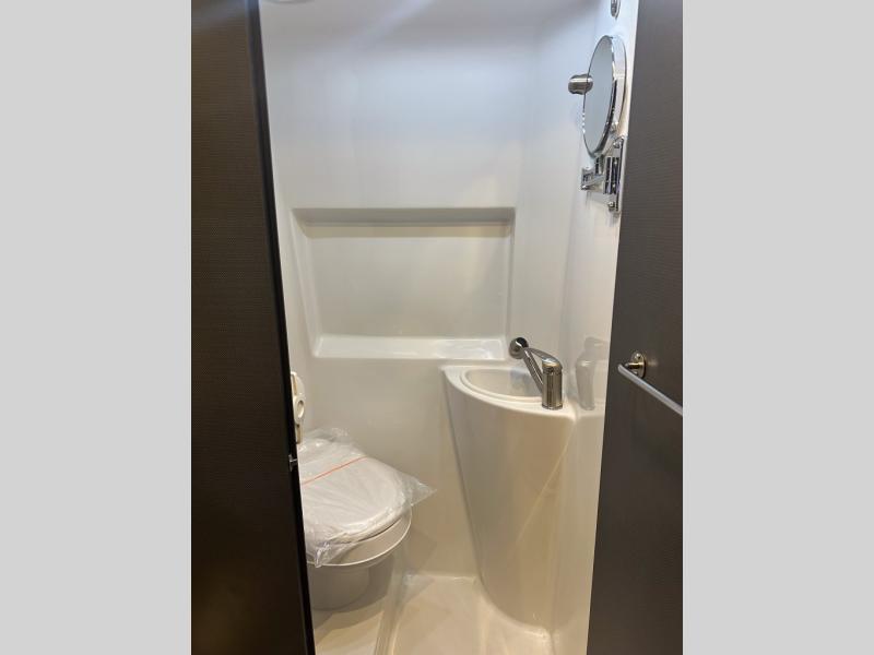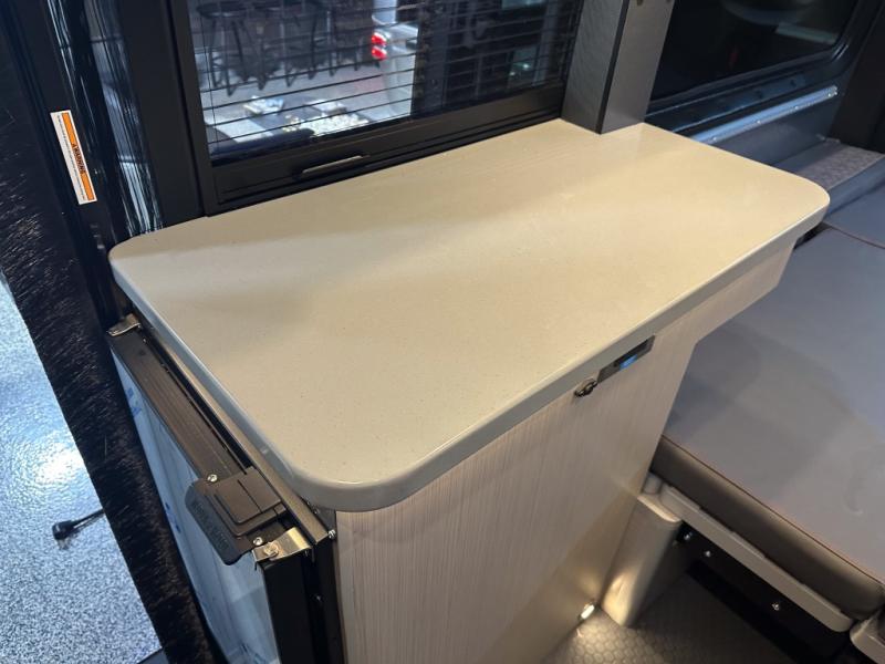 This motorhome is set apart with its flexibility! The bench seating area combined with multiple table mounts make for the perfect gathering spot to play games and enjoy meals prepared with the induction cooktop (stowable), .7 cu. ft. locker microwave, 3.1 cu. ft. refrigerator/.33 cu. ft. freezer, and soft close drawers with locking hardware for your utensils. The swiveling captain's chairs spin around to face the interior area for more seating options. You can effortlessly load up your bikes, kayaks, and fishing gear with the L-track system and know that it will stay in place, and the flexible living and sleeping space will allow you to configure it to fit your needs!