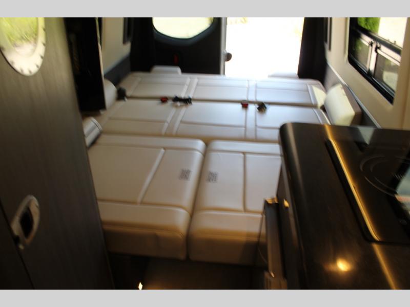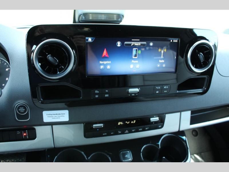 For the true adventurer, there isn't much that quite compares to the Airstream Interstate 24X Class B diesel motorhome! This brand is exceptional for off-grid tours because of its performance capabilities, air ride suspension, and all-season all-terrain rugged tires. There is also a black roof rack, exterior gear wash station, and an off-road front HD LED light bar. The cockpit has an MBUX infotainment system and premium digital media receiver with Bluetooth connectivity for the tech enthusiast, and you can also add an optional front bed system to the cockpit if you need another sleeping space. You'll also love the adjustable LED lighting, Ultraleather seating, solid surface galley countertop with edge band lighting, and many more interior comforts!