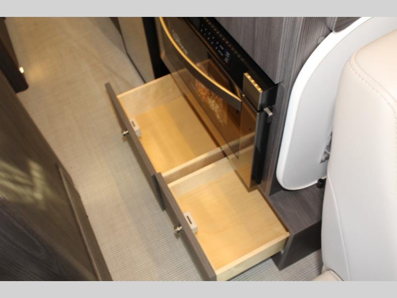 You'll be ready for just about anything with this Interstate 24X Class B diesel motorhome! This coach has some great storage solutions with the aluminum aircraft L-track storage system, lower storage compartments under the seating, oversized center aisle storage for kayaks or bikes, a pantry with built-in drawers and shelves, and a security safe. Nothing will be more convenient to have while traveling on the road than the heated wet bath with a retractable clothesline and towel rack, and the galley kitchen with cooktop, sink, and refrigerator. The blackout privacy and light shades are another useful feature that will allow you to block out the light while you sleep.